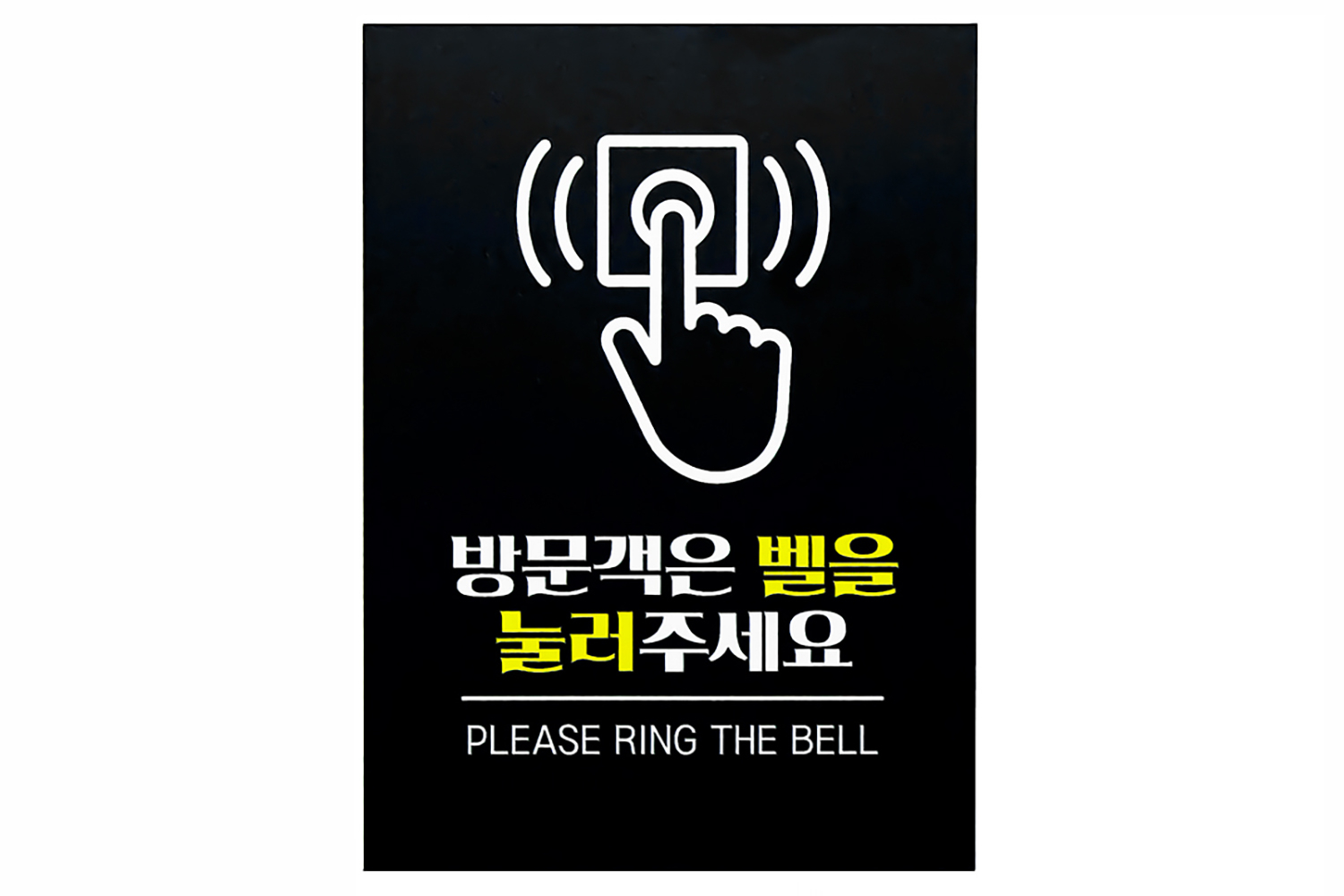 방문객에게 용무시 벨을 누를 수 있도록 유도 하기 위해 제작된 안내판으로