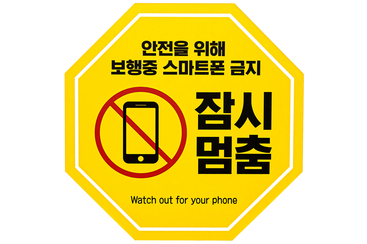 다음은 보행 중 스마트폰 금지 안내판입니다!