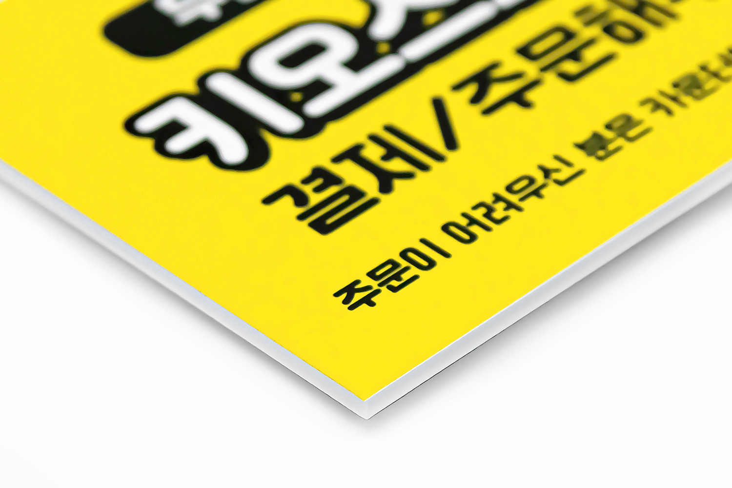 사진과 같은 포맥스 안내판 타입과 젖거나 찢어지지 않는 화이트 시트 타입의 스티커로도 제작이 가능합니다!