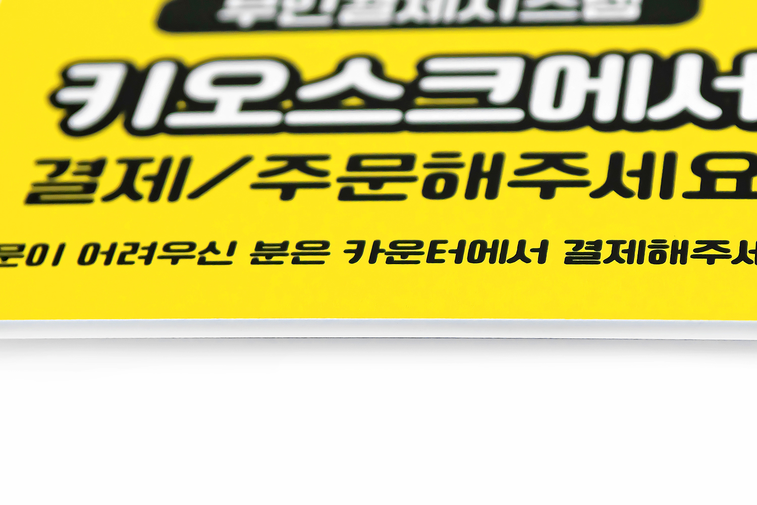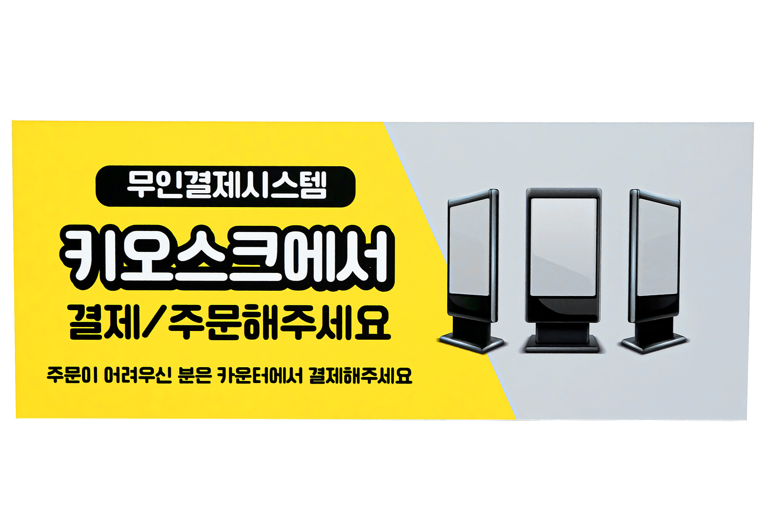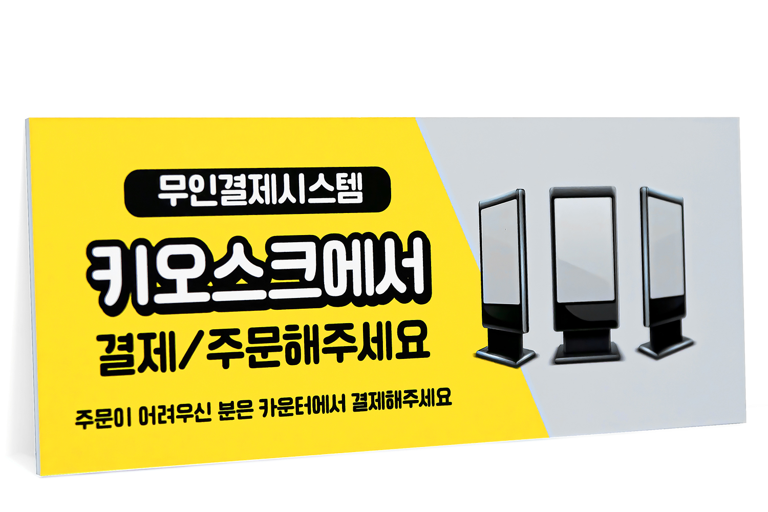 키오스크 이용을 알리기 위한 안내판으로 음식점이나 카페 등