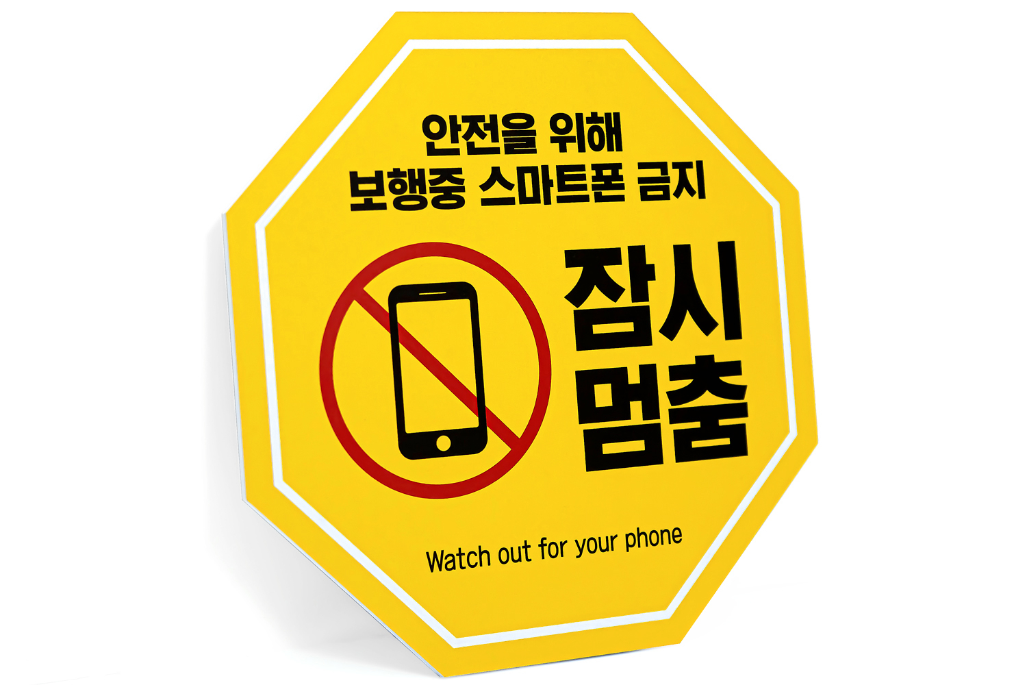 보행 중 스마트폰 사용으로 인한 안전사고를 미리 예방하기 위해 제작된 안내판으로