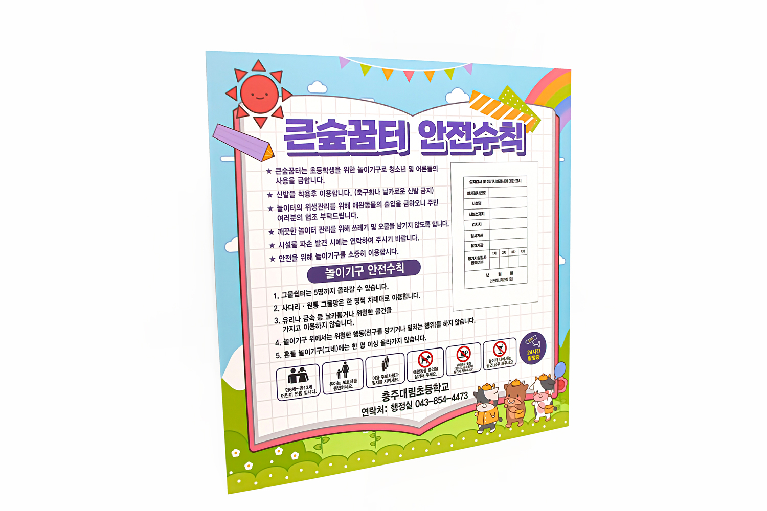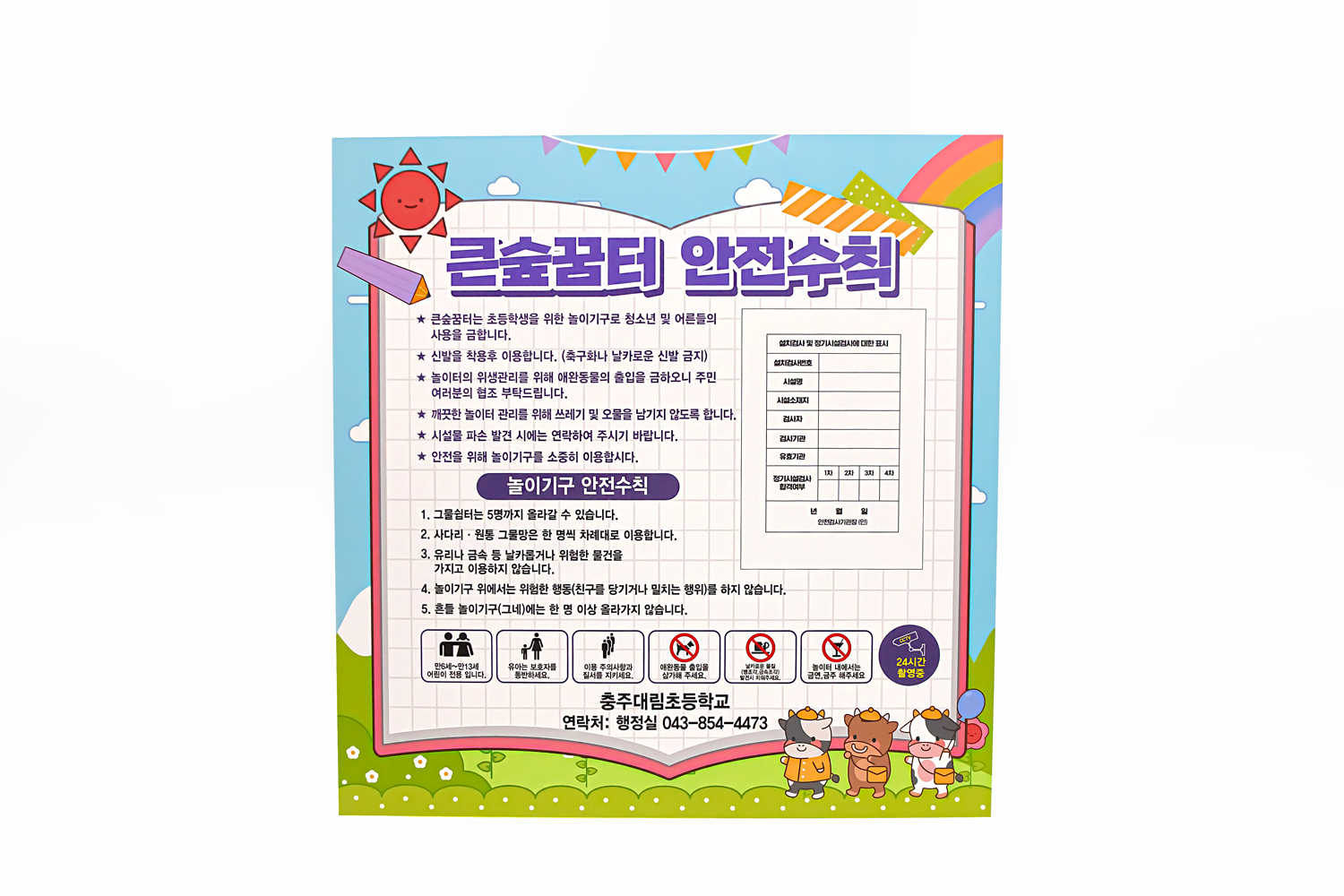 다음은 충주대림초등학교에서 주문해 주신 놀이터 안전 수칙 안내판입니다!