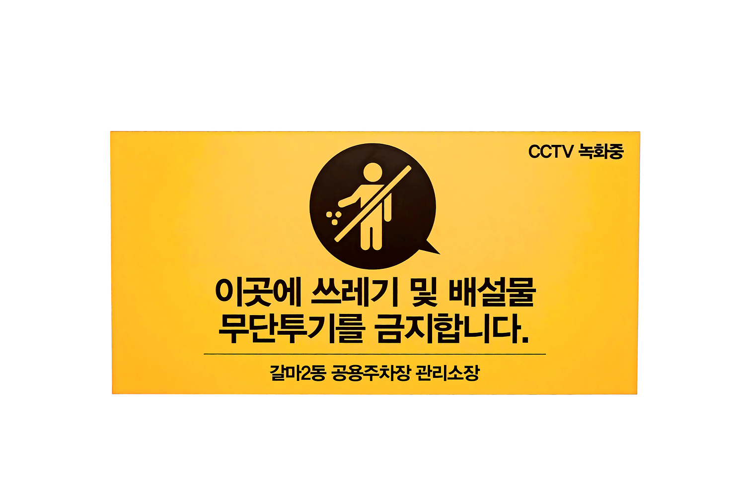 각종 쓰레기의 무단 투기 행위 금지를 알리고자 제작된 안내판으로