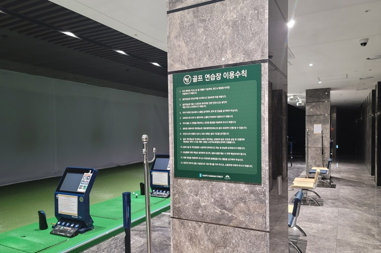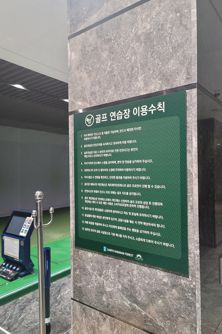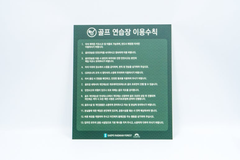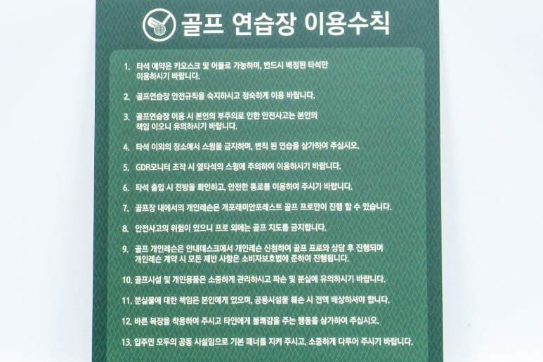 골프 연습장 이용 시 안내 문구가 적혀있습니다.