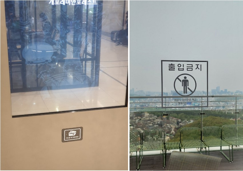 유리에는 투명 스티커로 제작되어 반대편에서 식별이 가능한 장점 있습니다.