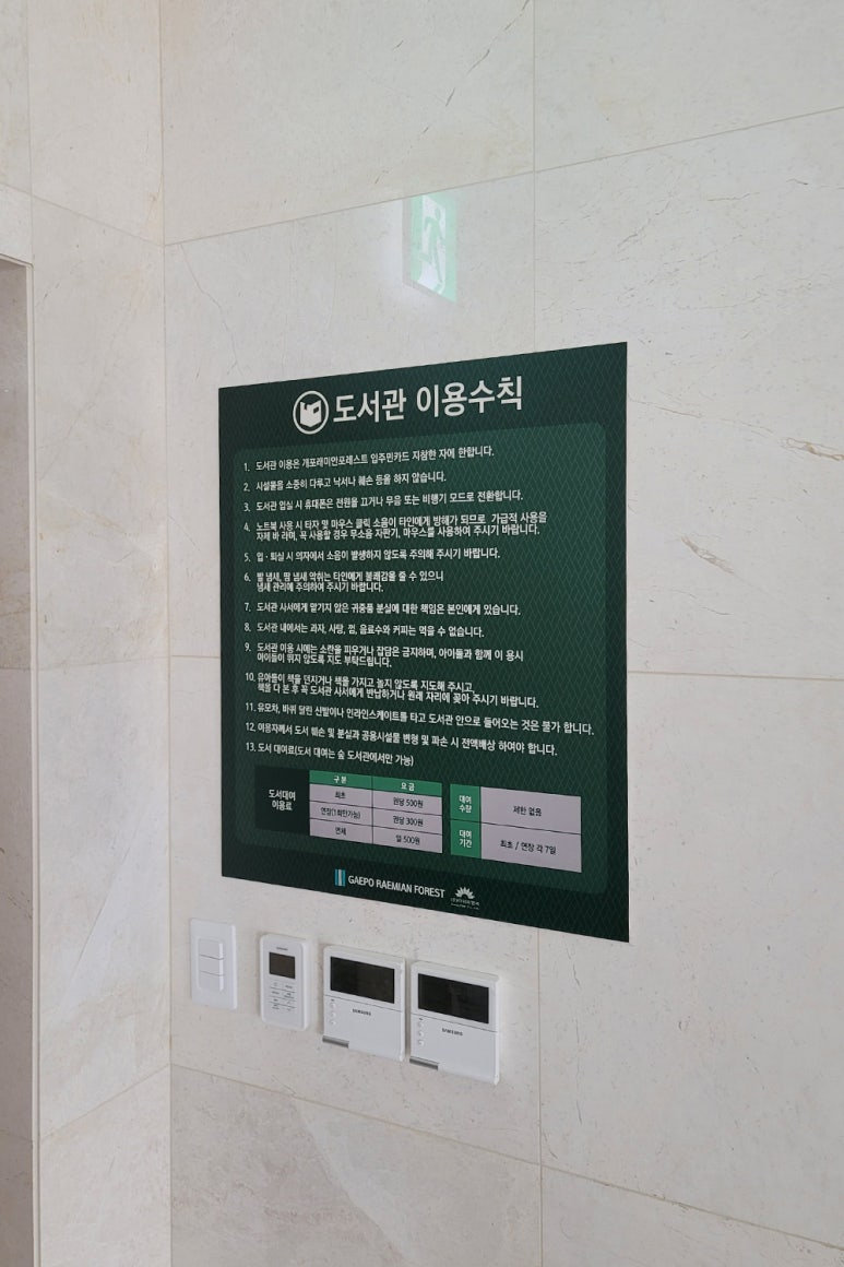 커뮤니티 시설 이용수칙 및 안내판과 스티커 제작 시공 리뷰를 하려고 합니다.
