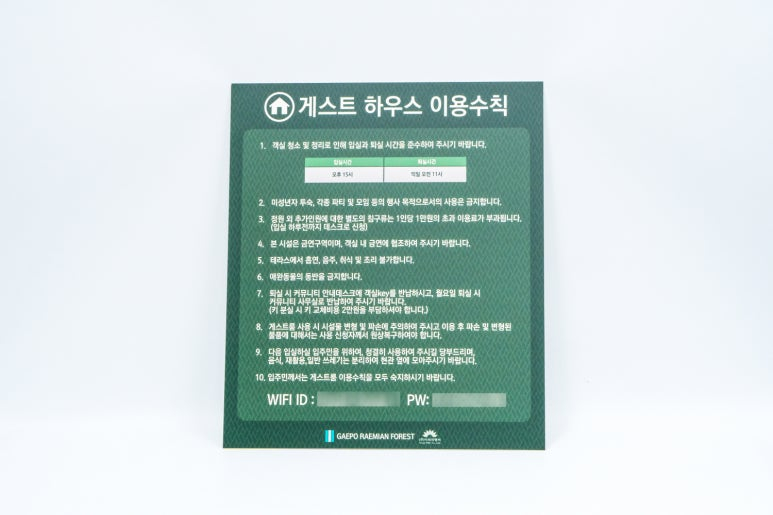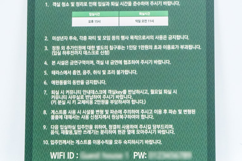이용안내 그리고 공유기 계정이 적혀있습니다.