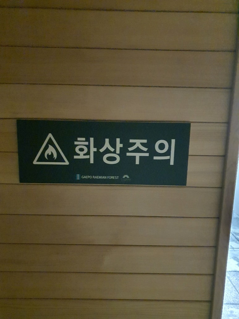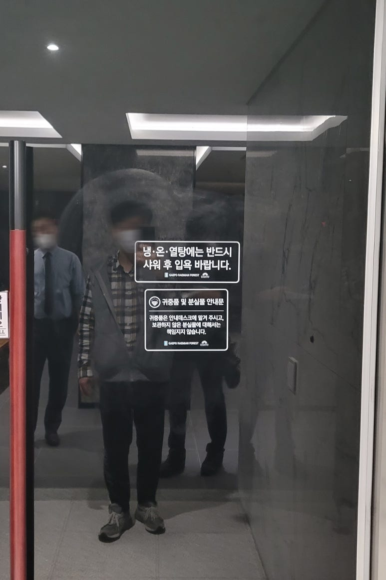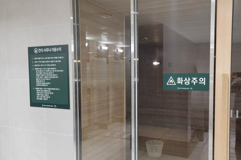 사우나 입구에 안내문 스티커가 부착이 되어 있습니다.