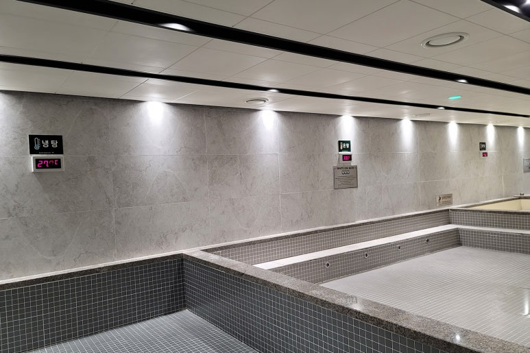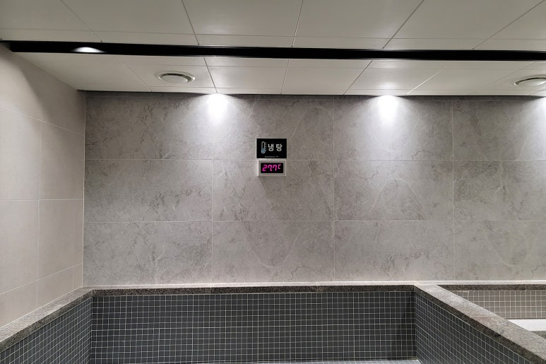 이렇게 냉탕, 열탕, 온탕 안내판이 부착되어 있습니다.