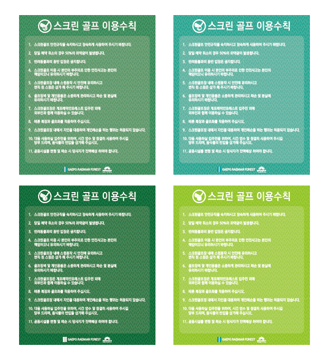이용수칙 과 각종 안내판, 스티커 제작 시공 리뷰를 보여 드리겠습니다.