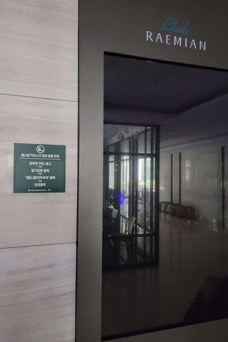 입구에는 이렇게 헬스장 키오스크 입장 방법 안내판이 부착되어 있습니다.