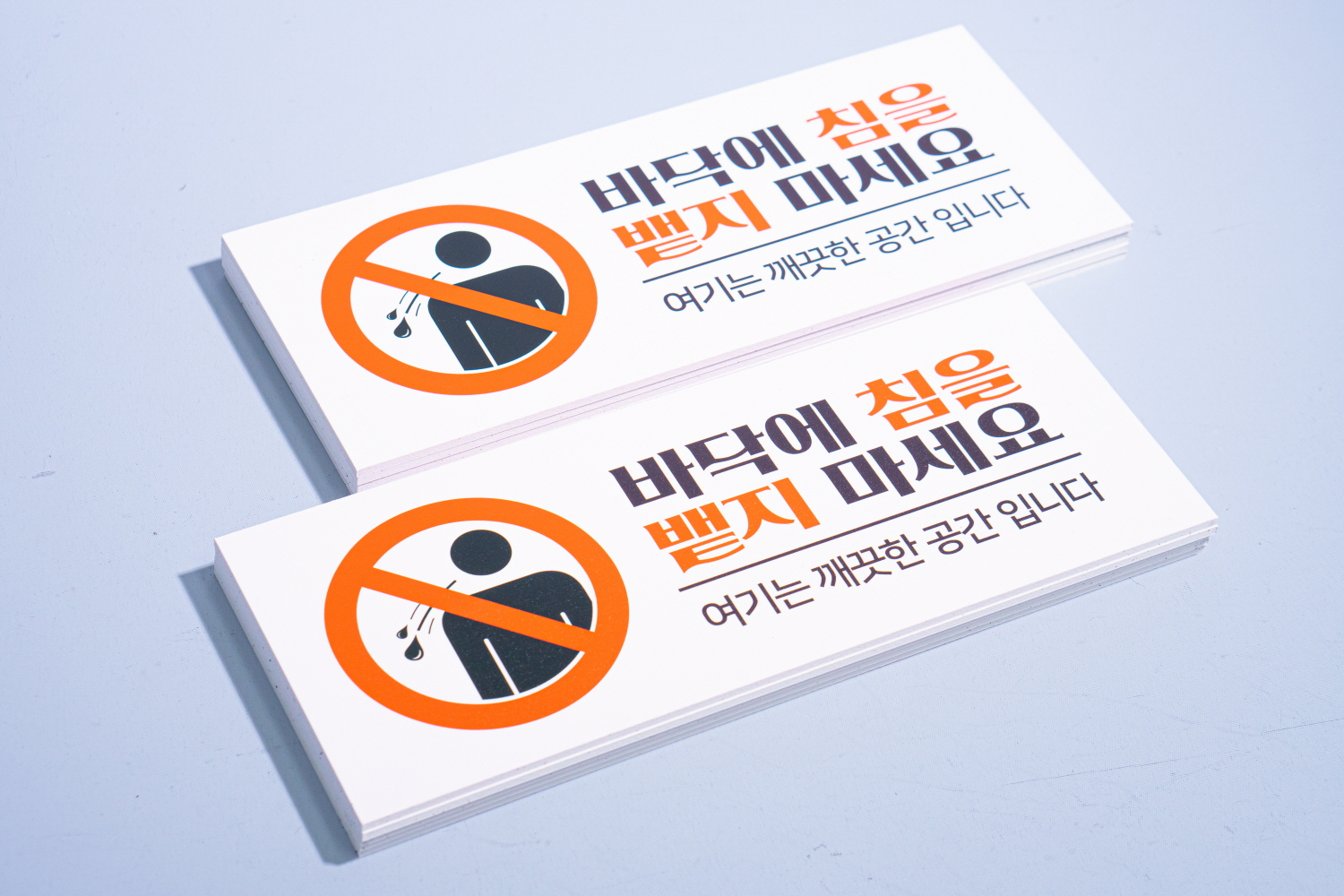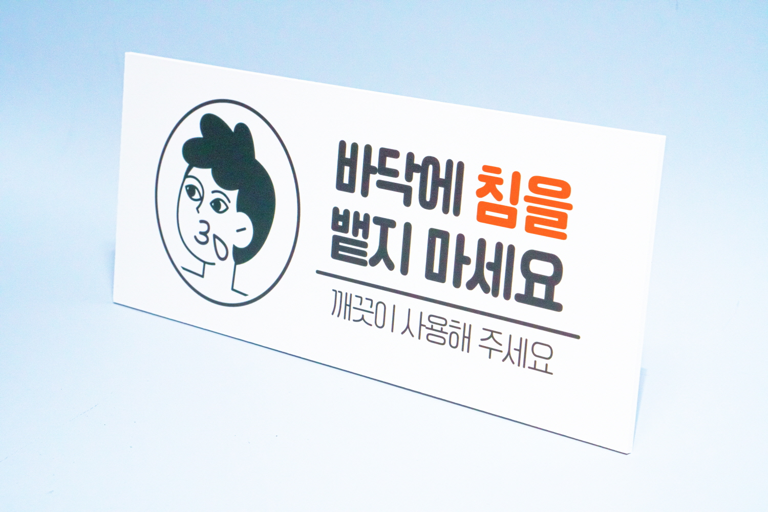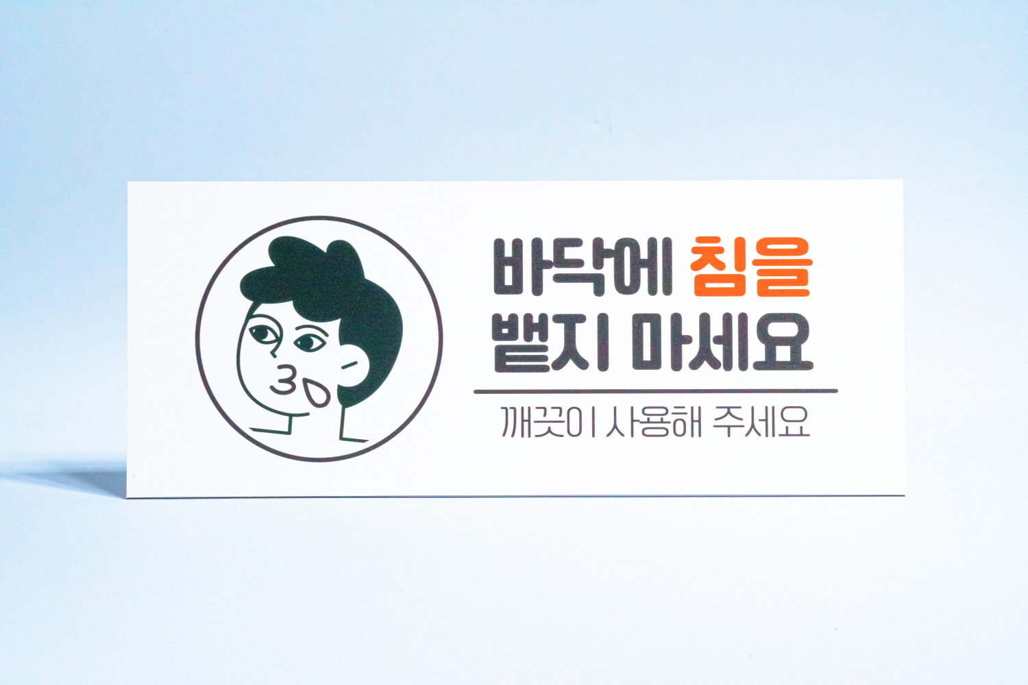 가장 먼저 소개해 드릴 상품은 바닥에 침을 뱉지 마세요 안내판입니다.