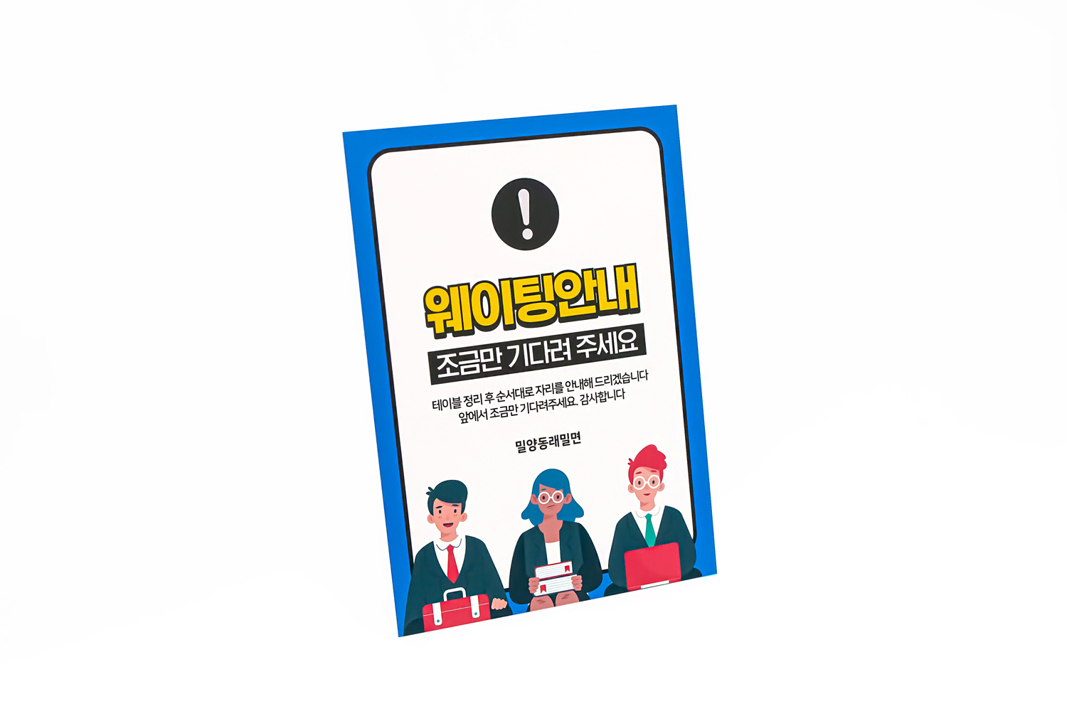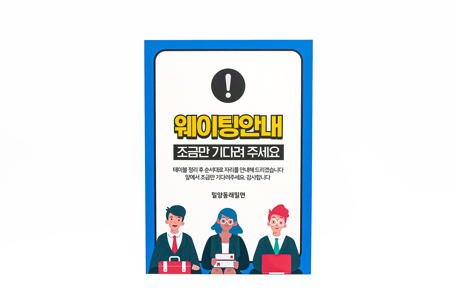 가장 먼저 소개해 드릴 상품은 밀양동래밀면에서 주문해 주신 대기명단 작성 안내판입니다!