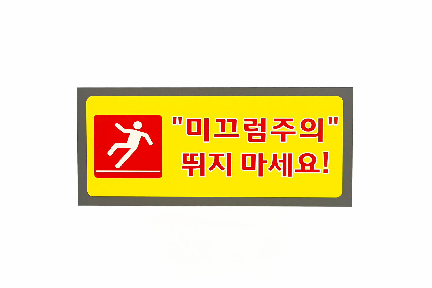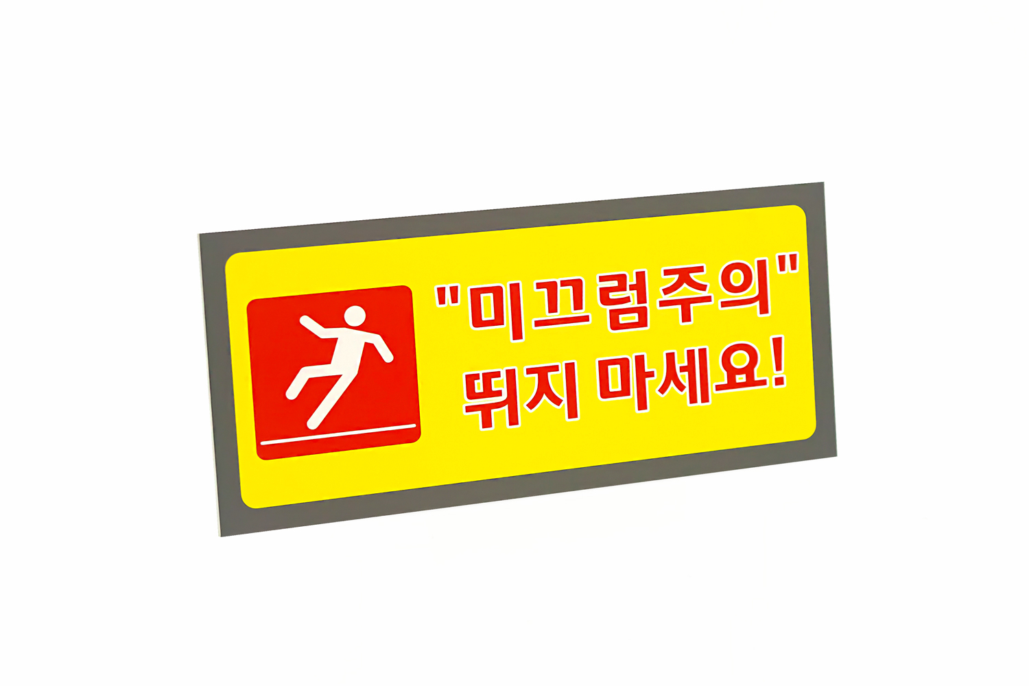 미끄러져 발생할 수 있는 사고를 미리 예방하기 위해 제작된 안내판인데요!