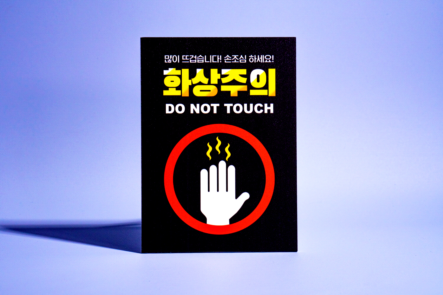 겨울철 뜨거운 난로나 히터 등으로 인한 화상 사고를 방지하기 위해 제작된 안내판으로