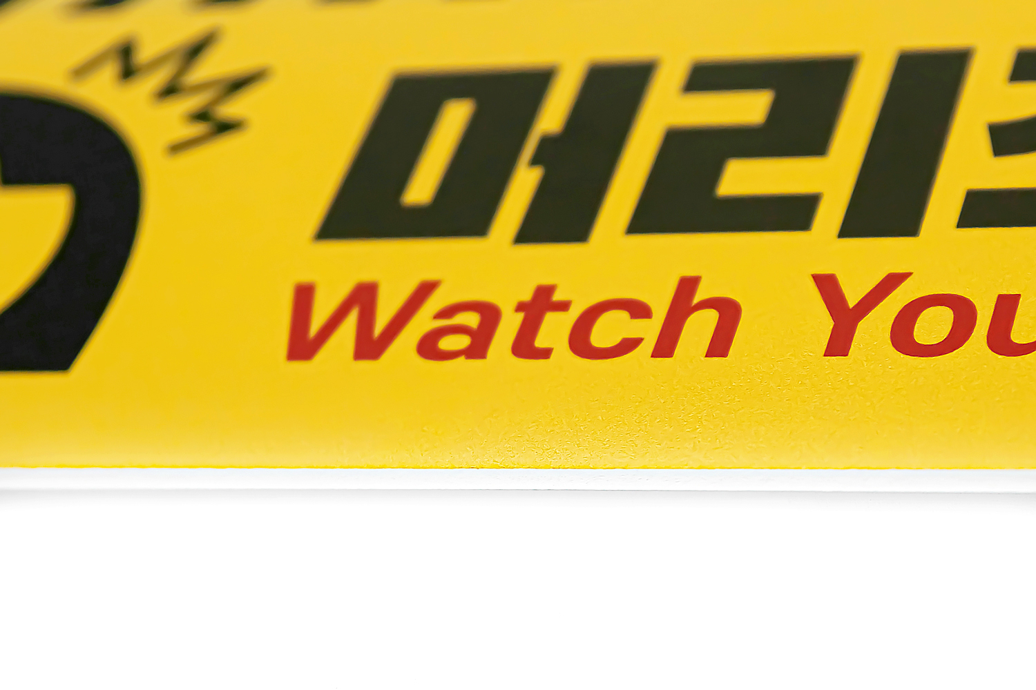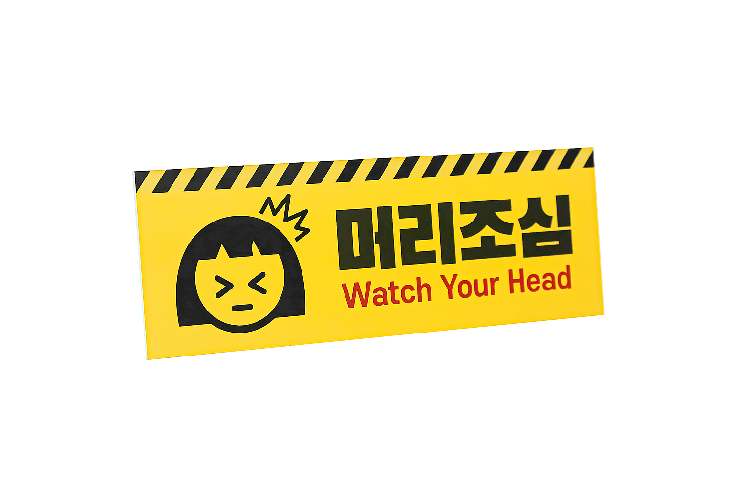 안전상 머리를 부딪혀 사고가 발생할 수 있는 장소를 알리기 위한 용도로 제작된 안내판으로