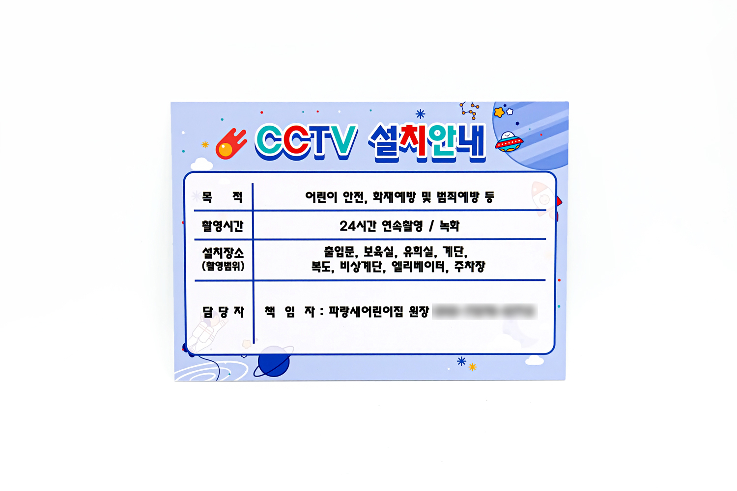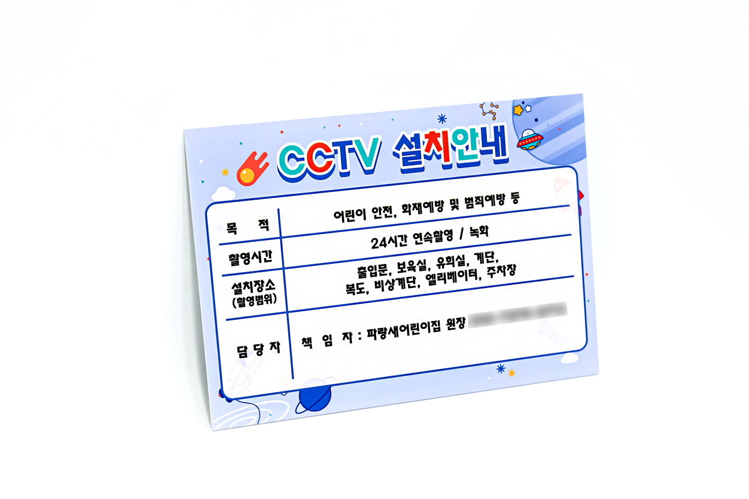 다음은 파랑새어린이집에서 주문해 주신 CCTV 설치 안내판입니다!