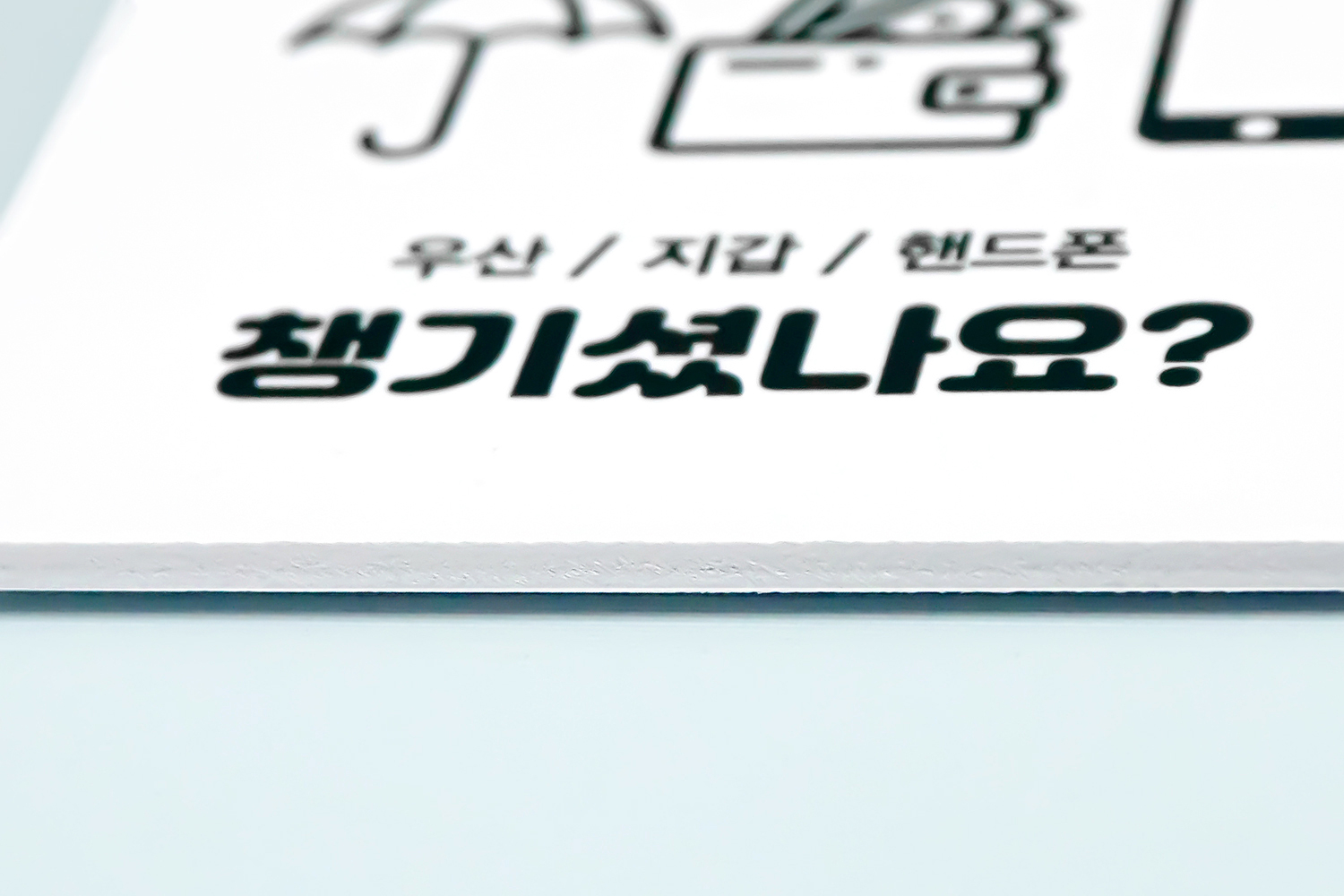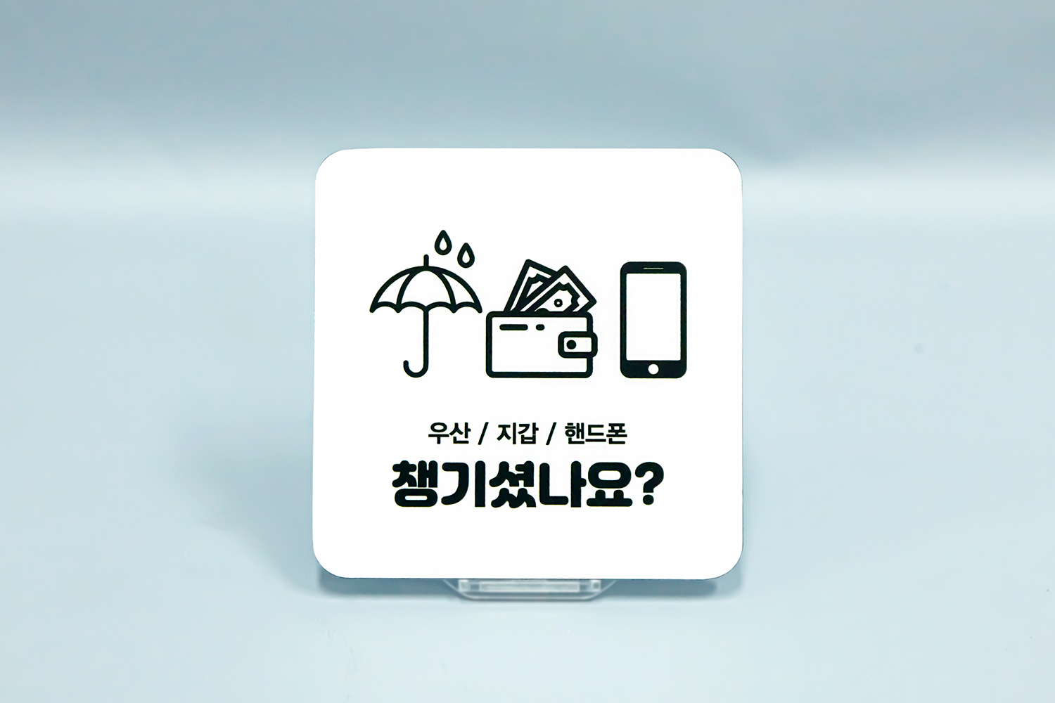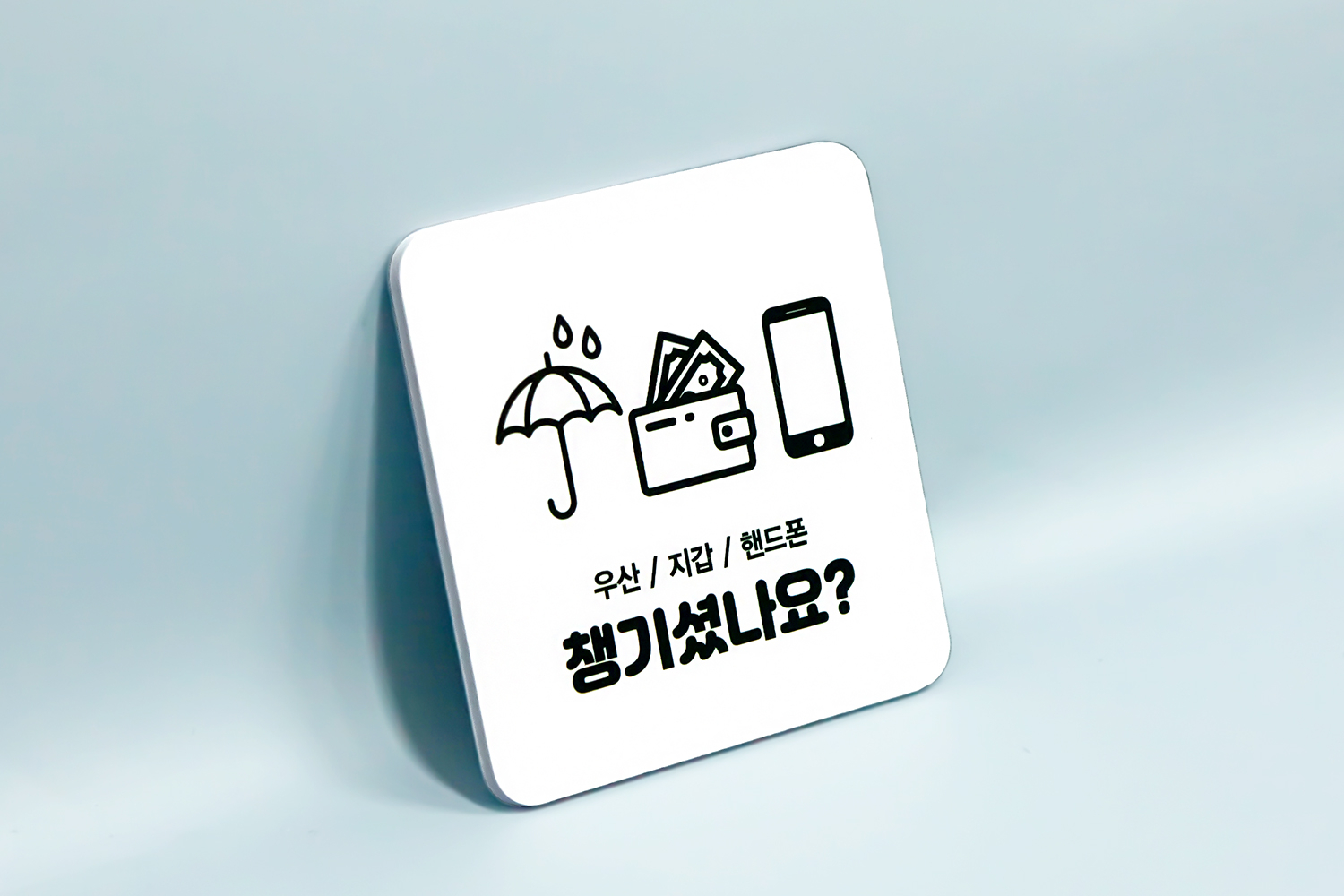 소지품을 분실하지 않도록 돕는 실용적인 도어사인 안내판인데요!