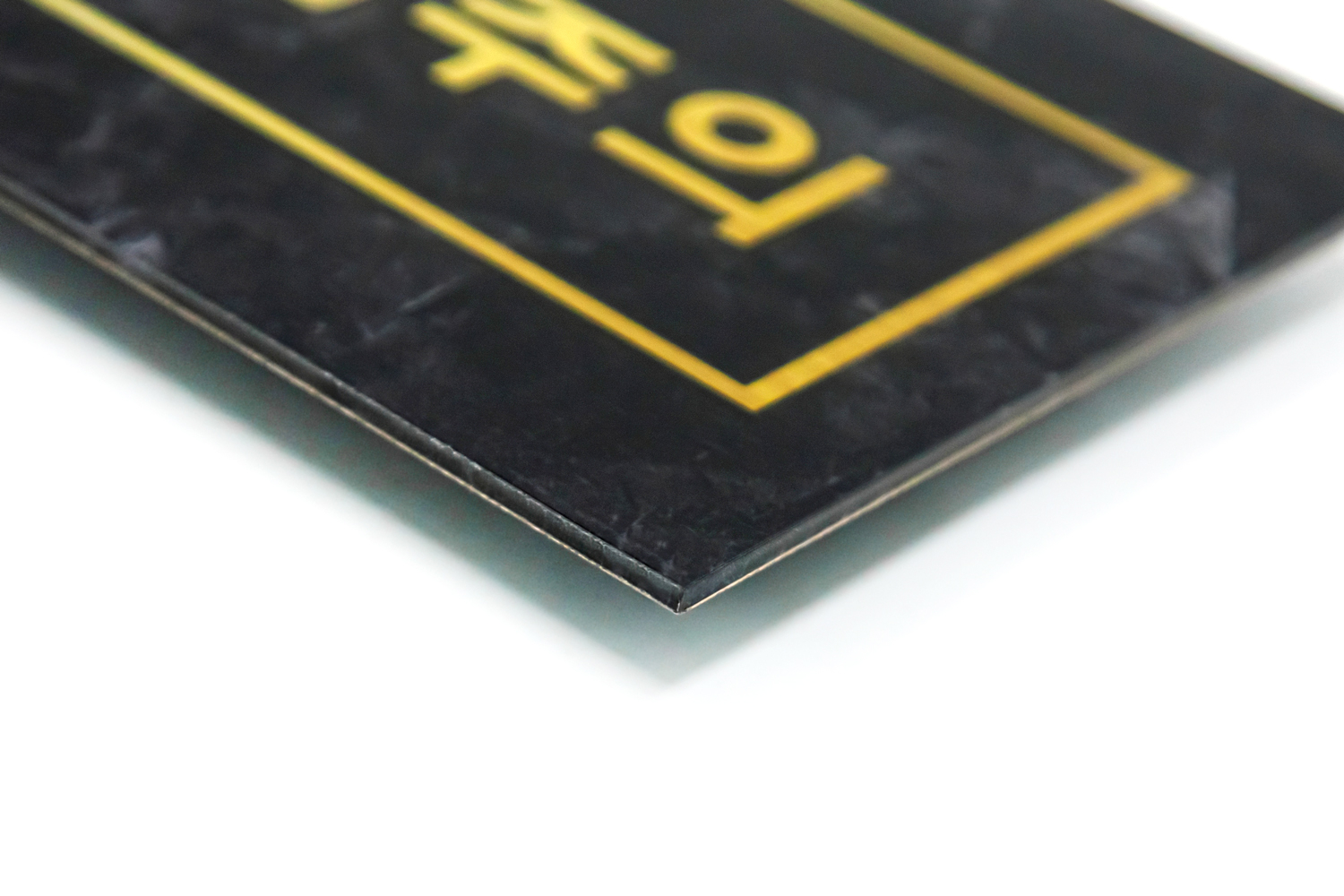 가장자리 각면 처리로 날카롭지 않고 입체적인 모양으로 고급스러운 안내판입니다!