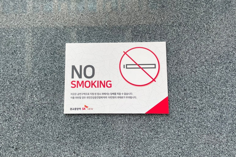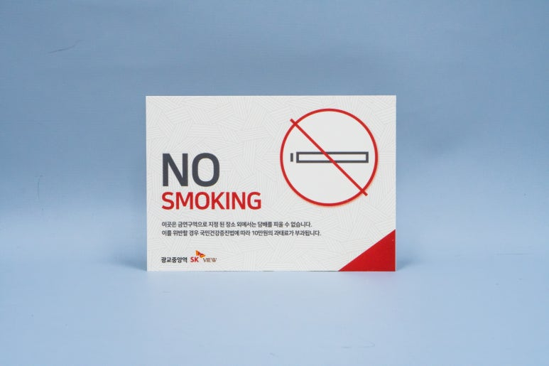 오피스텔 단지내 공공시설로 쓰이는 공간에 부착하는 금연구역 안내판 입니다.