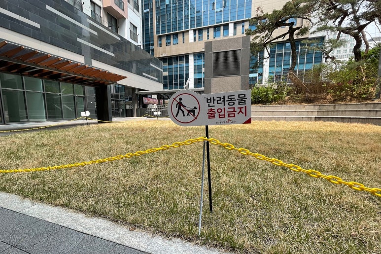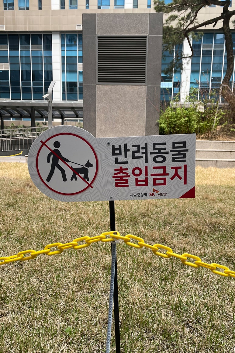 오피스텔 단지내 반려동물 출입이 금지된 장소에 설치하는 안내판 입니다.
