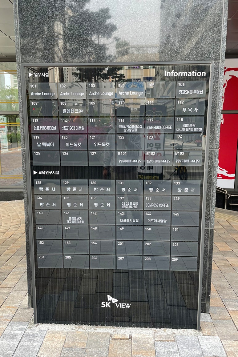 저희가 안내판, 층별 안내도를 시공할 광교중앙역sk뷰 오피스텔에 도착했습니다.