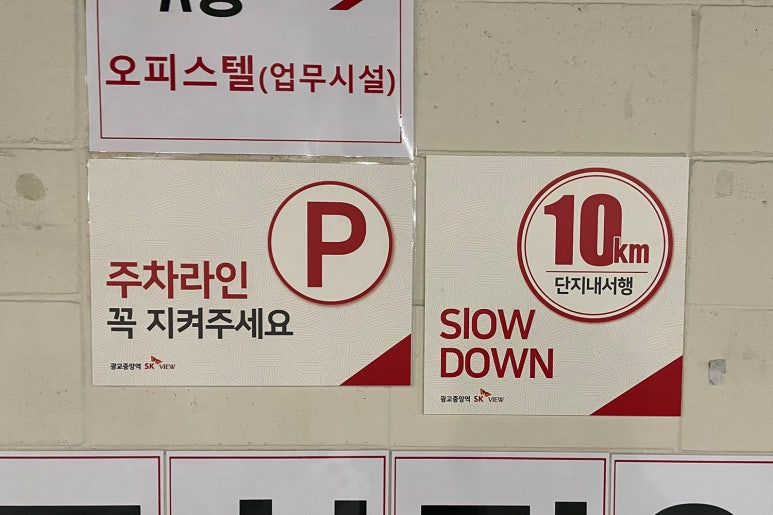 단지 내 서행 안내판 입니다. 오피스텔 안에 서행구간을 알리는 안내판 입니다.