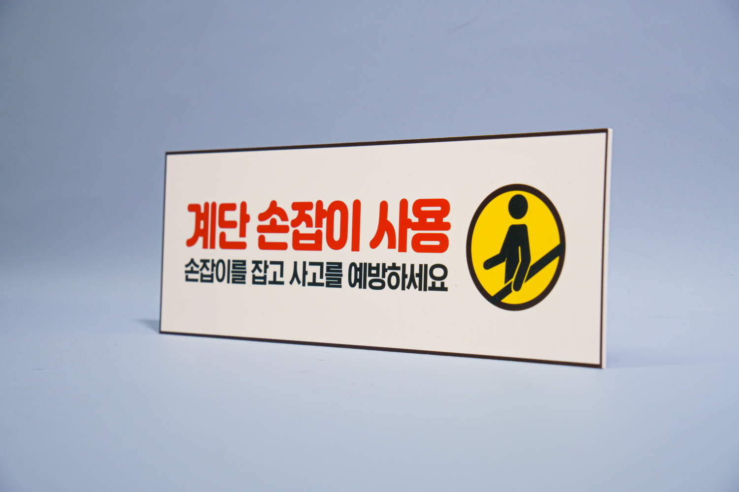 계단 이용 시 안전사고 예방을 위해 제작된 안내판으로