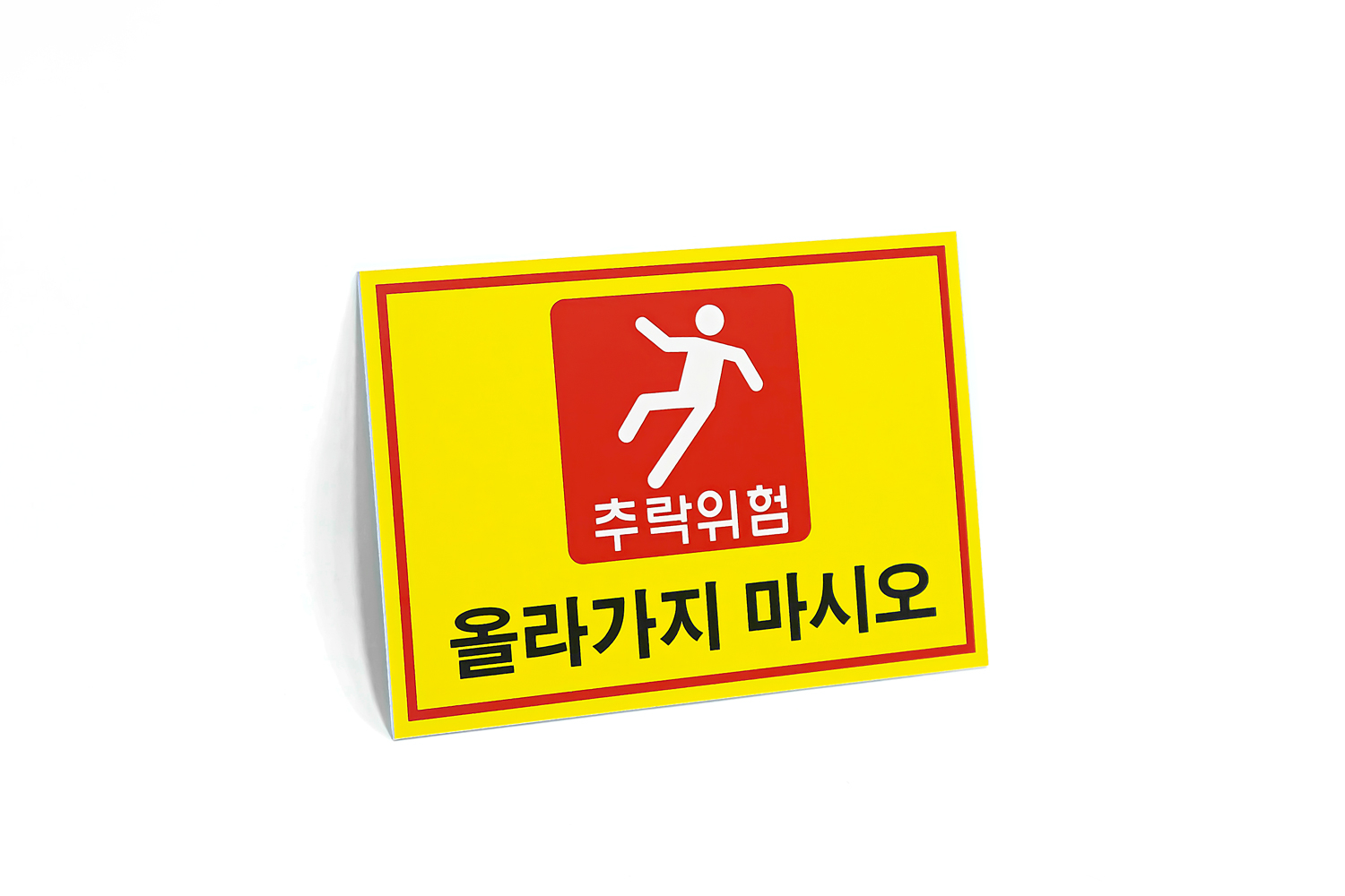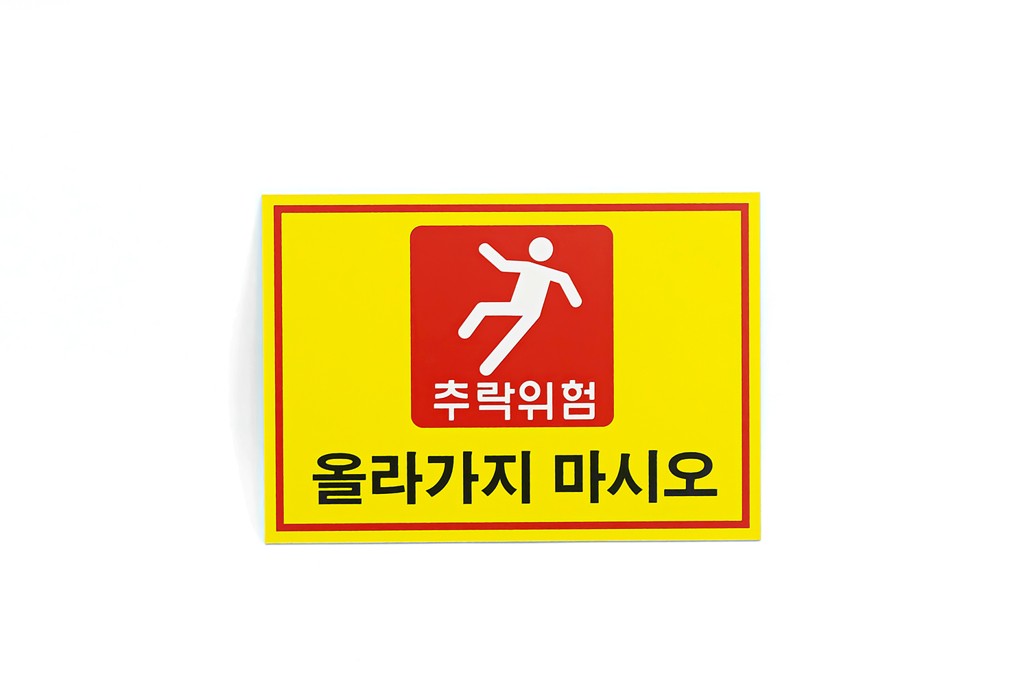 옥상이나 난간 등에서 발생할 수 있는 추락 사고를 방지하기 위해 제작된 안내판으로