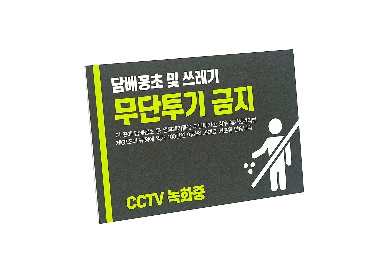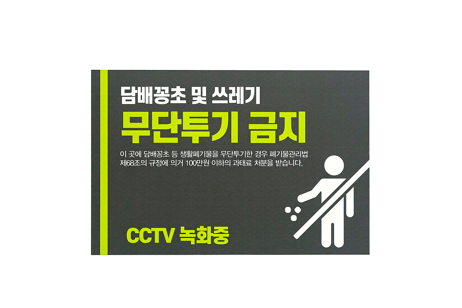 담배꽁초 및 쓰레기의 무단투기 행위 금지를 알리고자 제작된 안내판으로