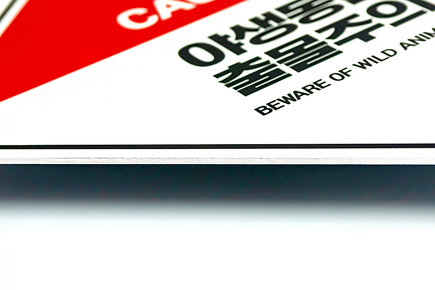 또한 야생동물 출몰 주의 안내판의 경우 도로 표지판에 사용되는 고휘도 반사지 타입으로 제작이 가능한데요!