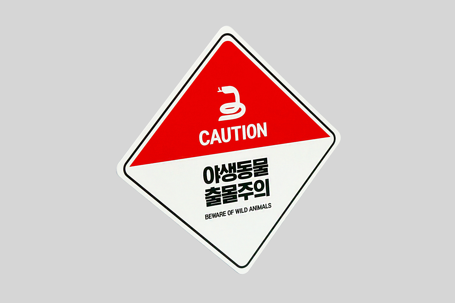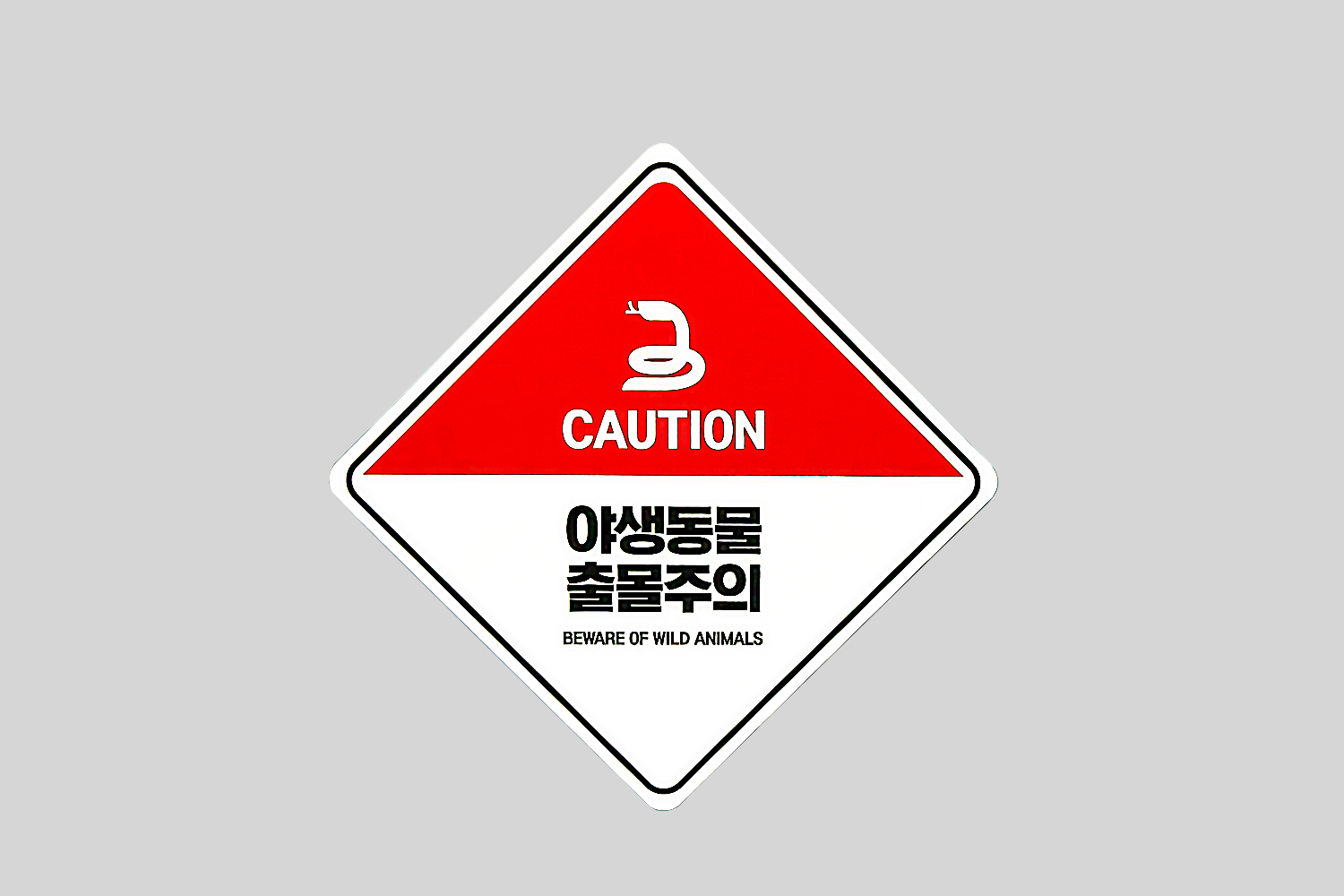 등산로나 도로 등에 야생동물 출몰로 인한 사고를 사전에 예방 할 수 있도록 하기 위해 제작된 안내판으로