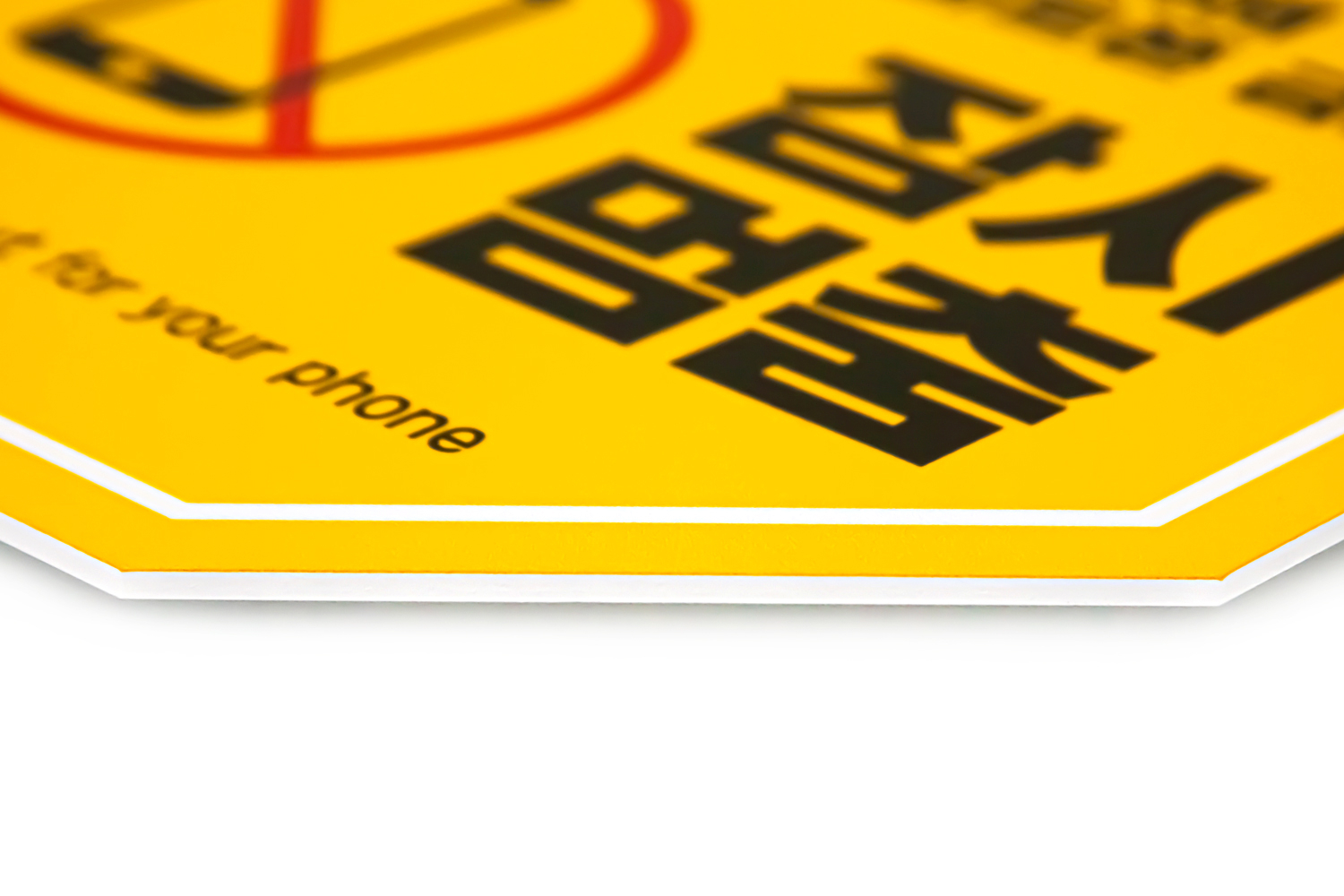 그린가드 골드 인증을 받은 정품 잉크로 제작한 안내판으로 실내 환경에 무해하고,