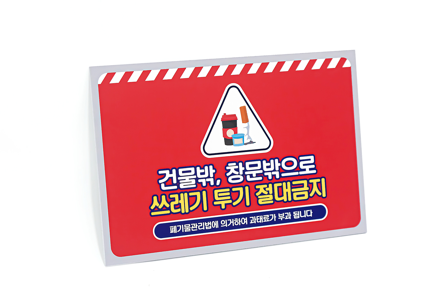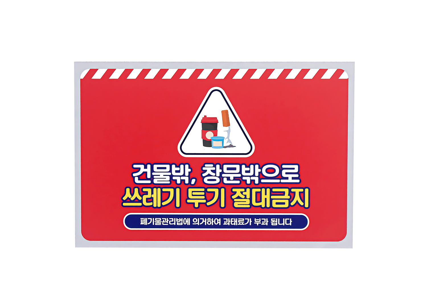 다음은 건물 밖 쓰레기 투기 금지 안내판입니다!