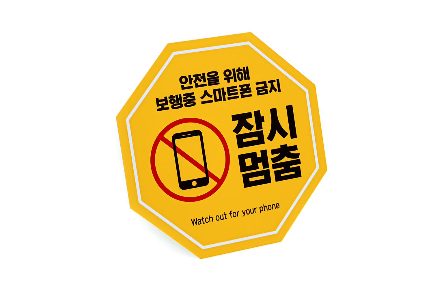 보행 중 스마트폰 사용으로 인한 안전 사고를 예방하기 위해 제작된 안내판으로