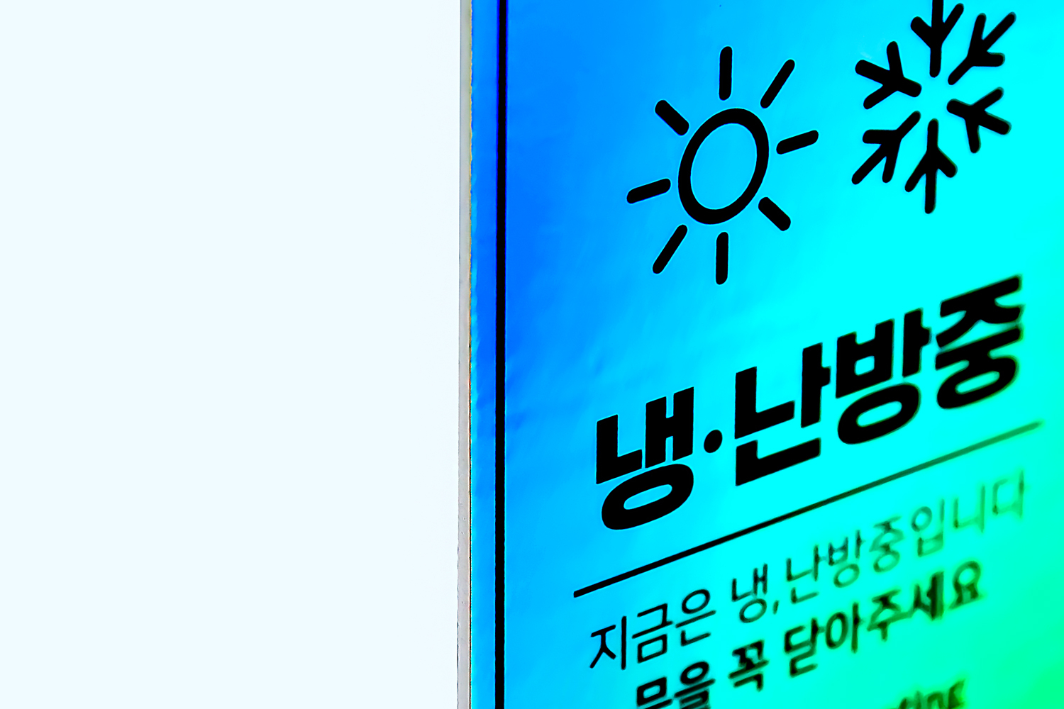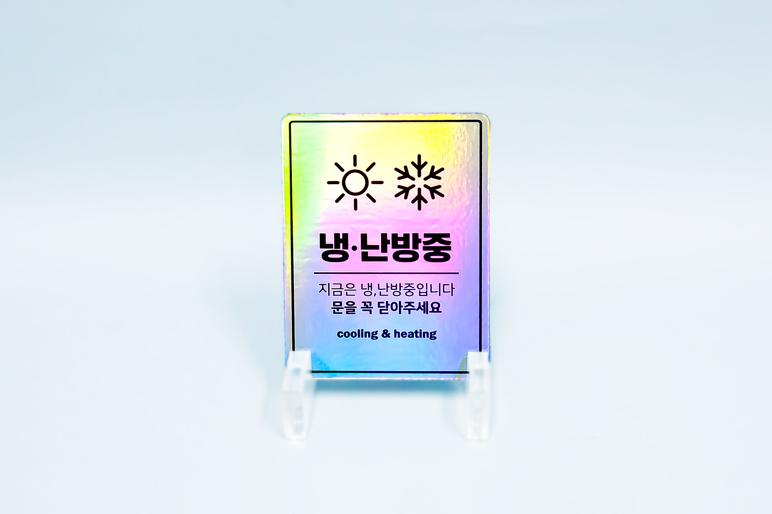 오늘은 가게 앞 금연 CCTV 녹화중 도어사인 홀로그램 냉·난방중 표지판 제작 리뷰를 보여드리겠습니다!