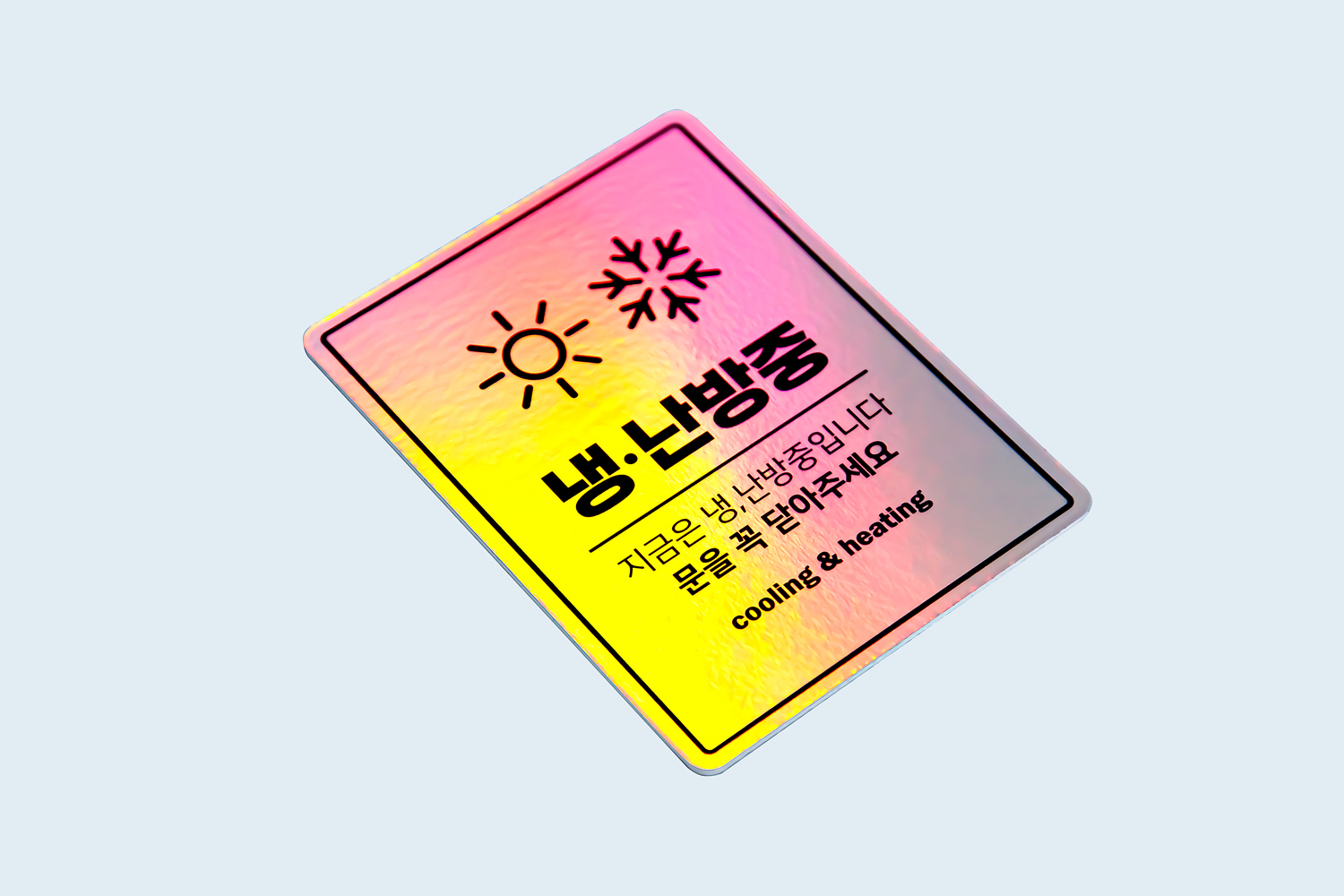 창문이나 유리문에 적합한 홀로그램 리무벌 스티커 타입으로도 주문할 수 있는데요!