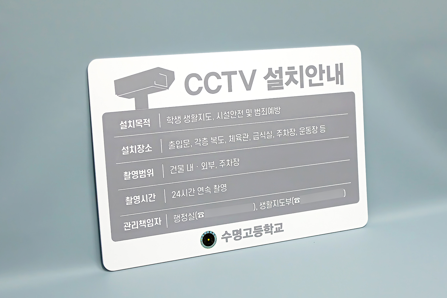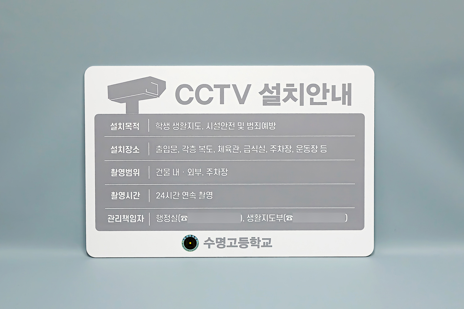다음은 수명고등학교에서 주문 제작 요청해 주신 CCTV 설치 안내판입니다!
