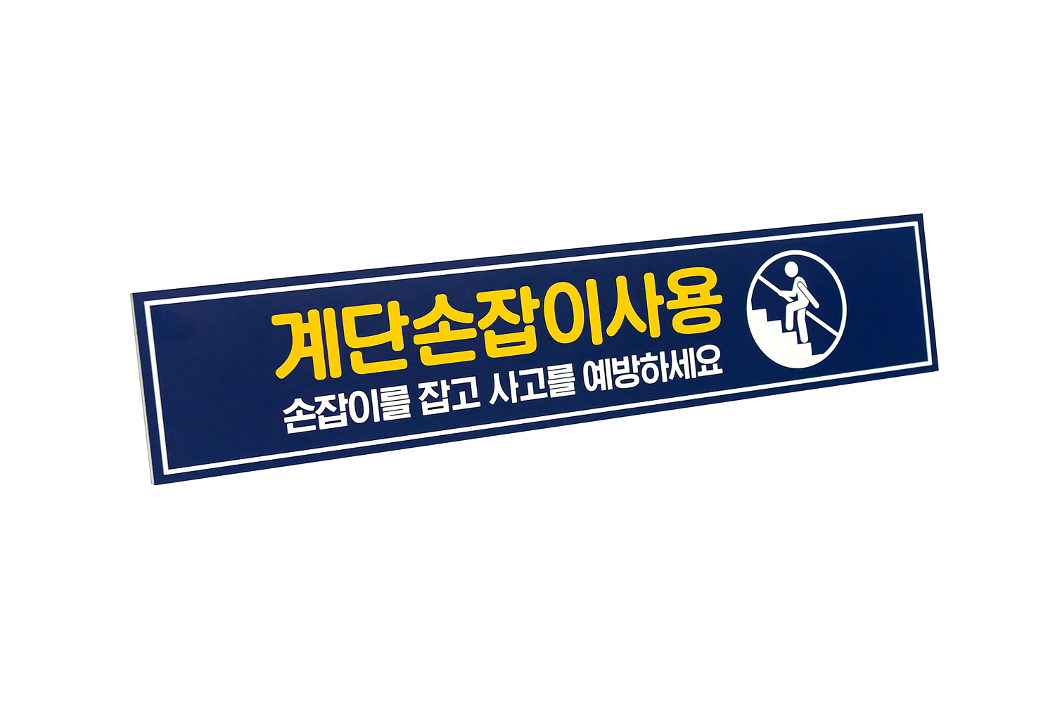 계단 이용 시 안전 사고 예방을 위해 제작된 안내판으로