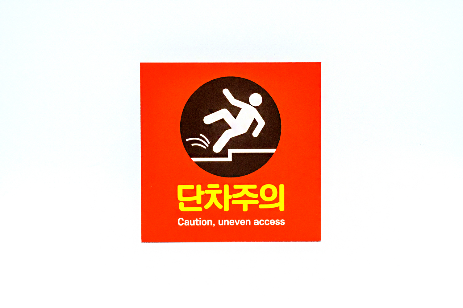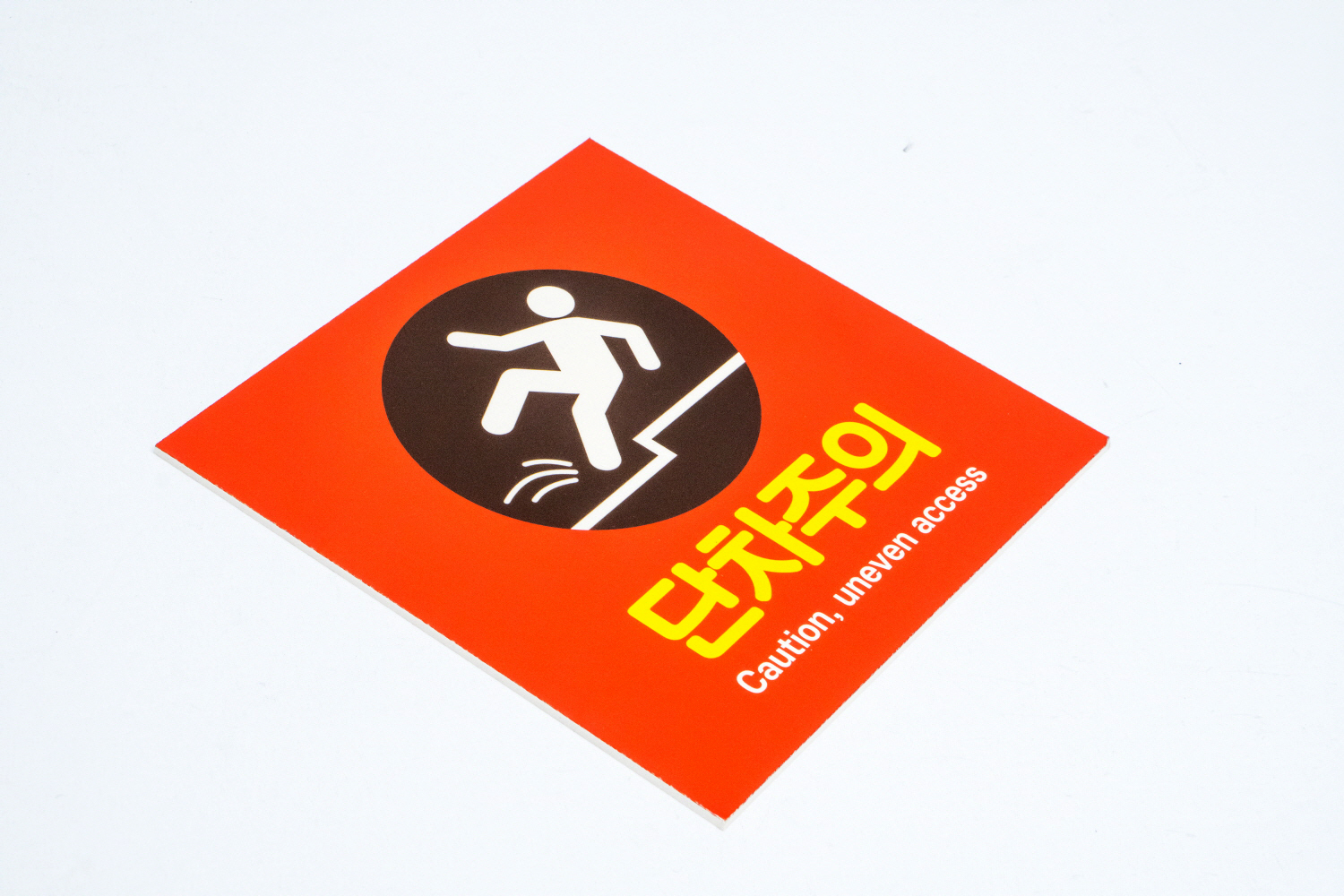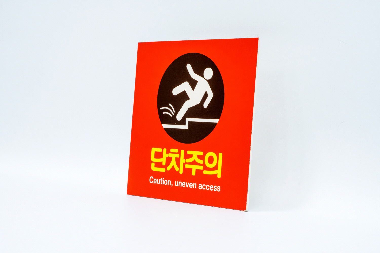 낮은 계단(단차)에서의 발생할 수 있는 사고를 미리 예방하기 위해 제작된 안내판으로
