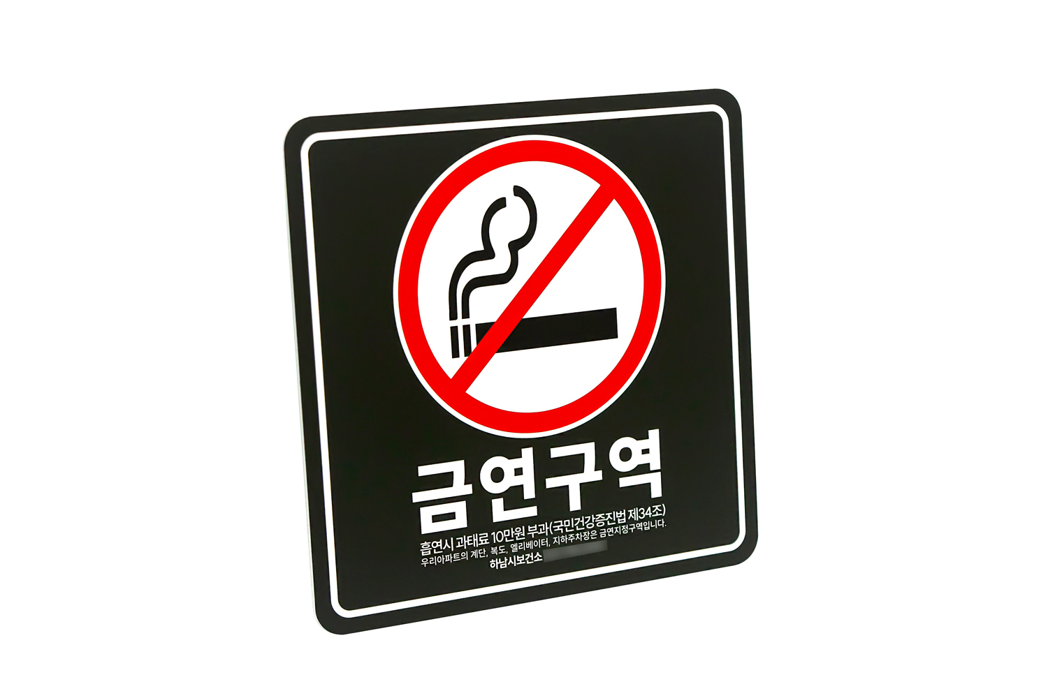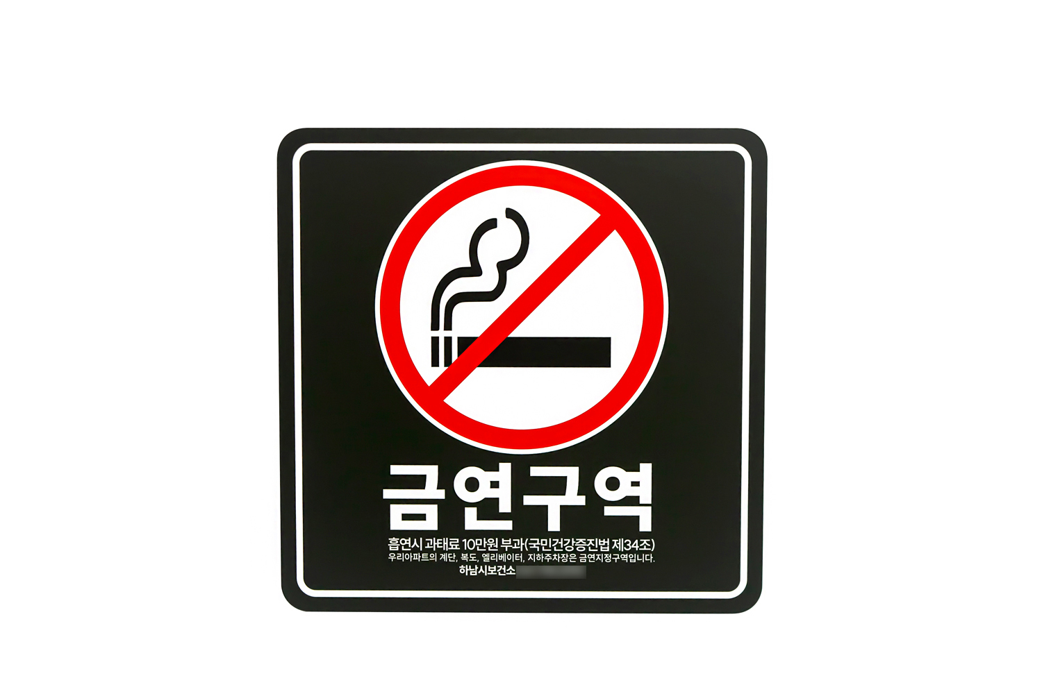 주문 제작 요청해 주신 포맥스 안내판으로 단지 내의 모든 금연구역에 부착하여