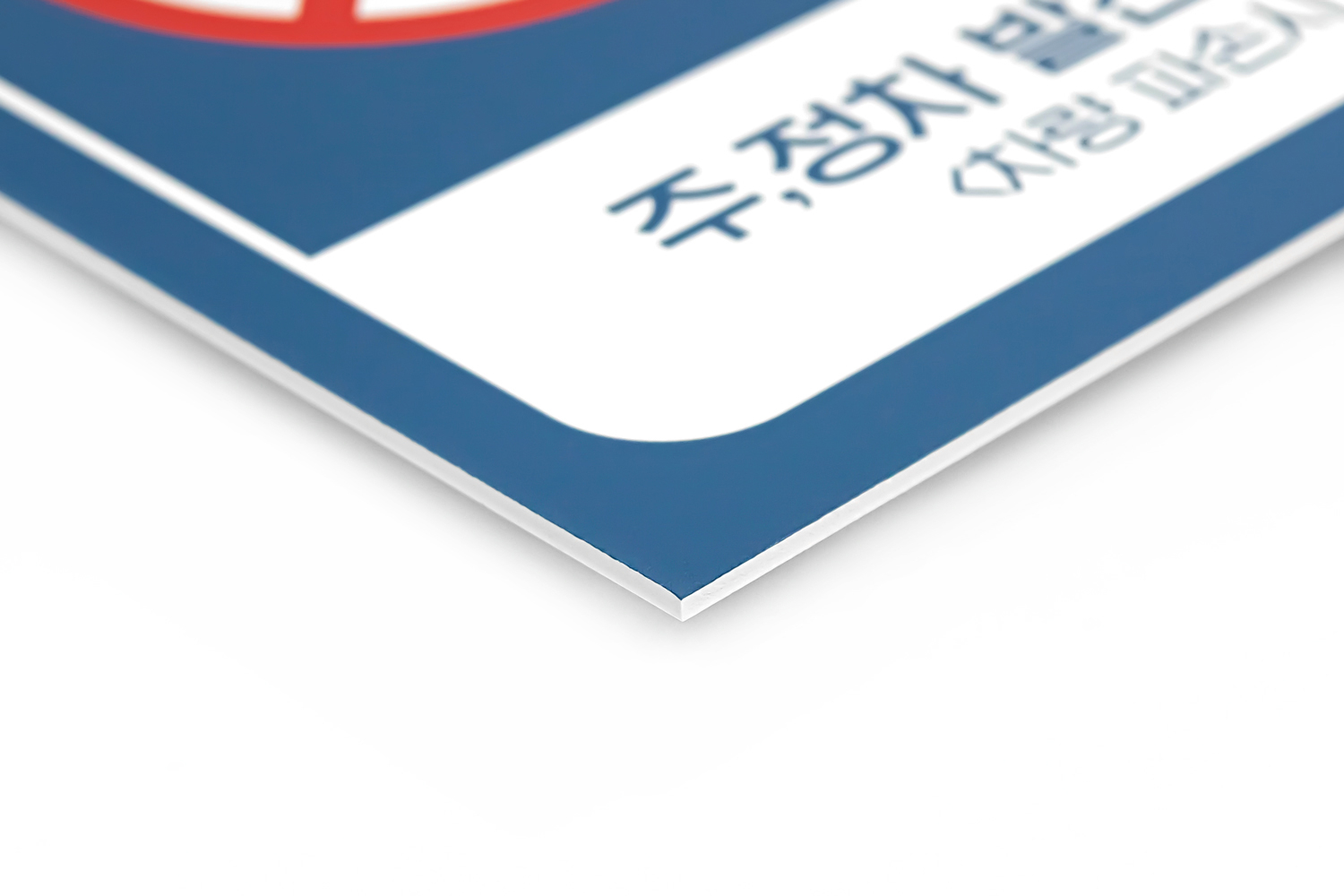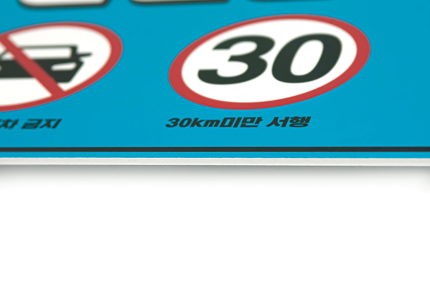 깔끔하지만 눈에 잘 띄는 디자인과 색상의 안내판으로 포맥스 위에 잉크를 직접 분사하여
