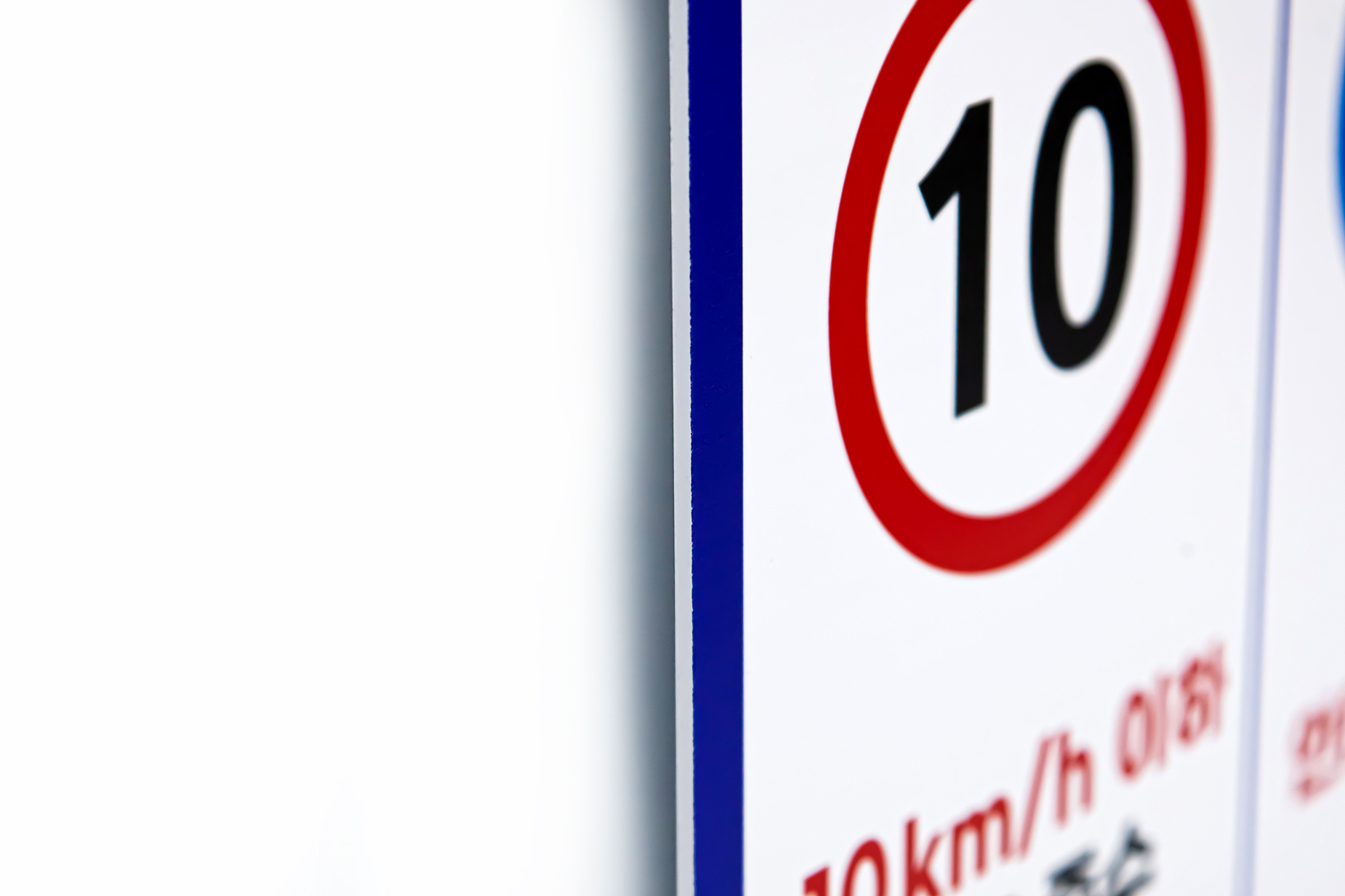 운전자가 잘 볼 수 있도록 통행 속도, 서행, 일시 정지, 어린이 통학버스 우선 등의