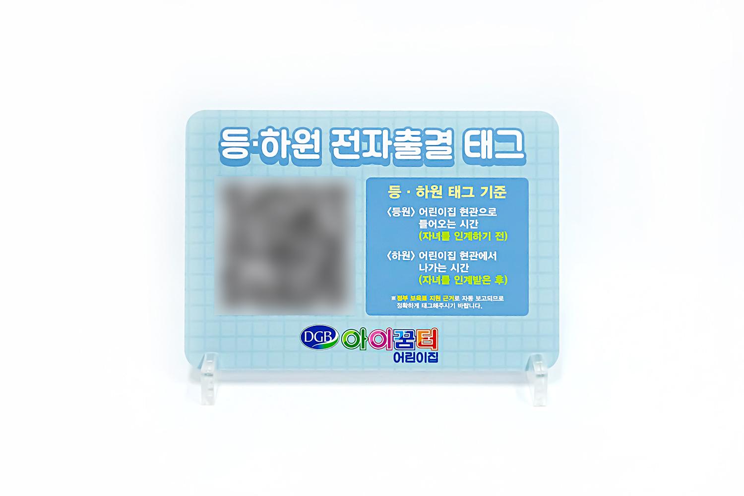 안내판에 QR코드를 넣어 등·하원 시 휴대 전화로 전자 출결 정보를 등록할 수 있는데요!