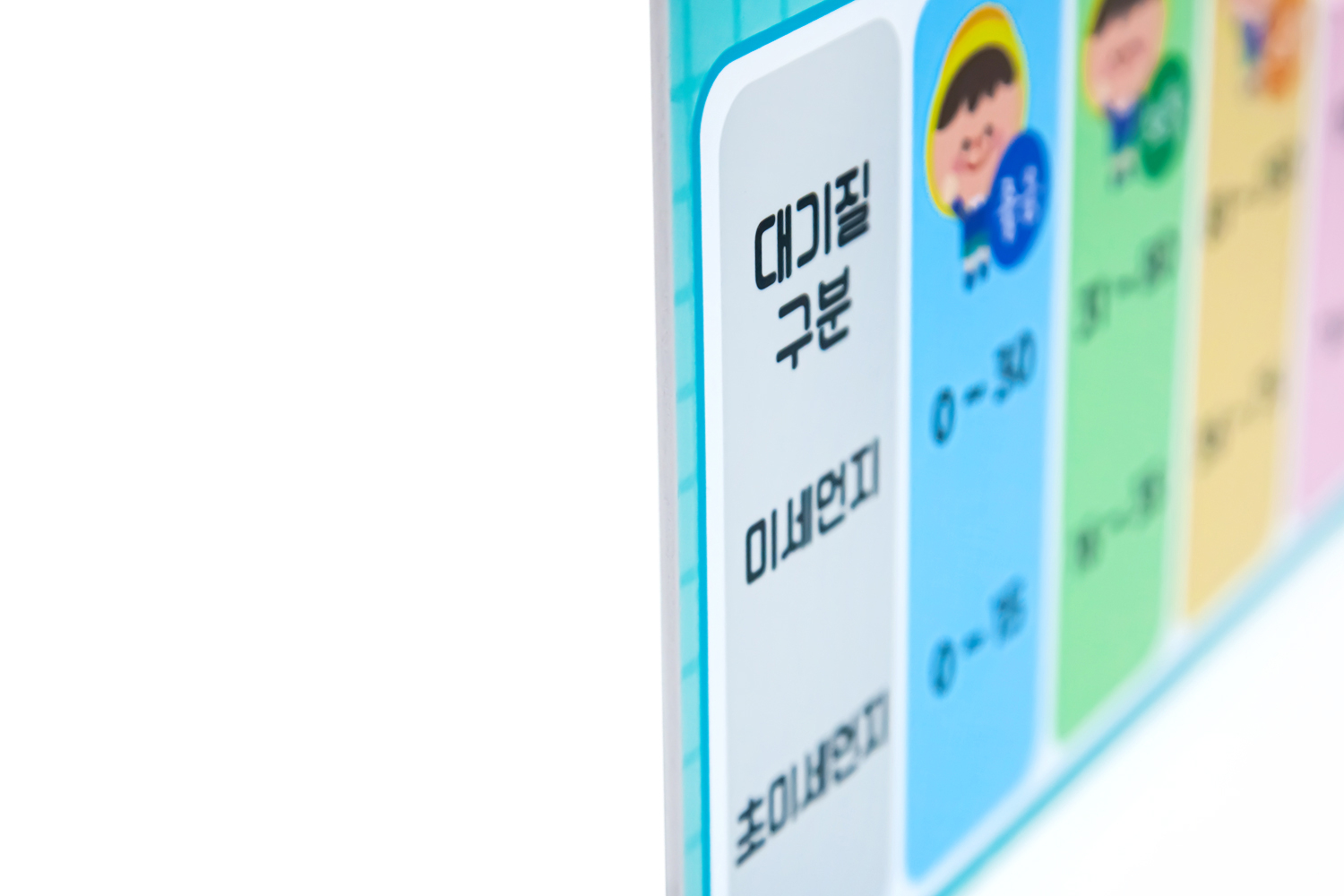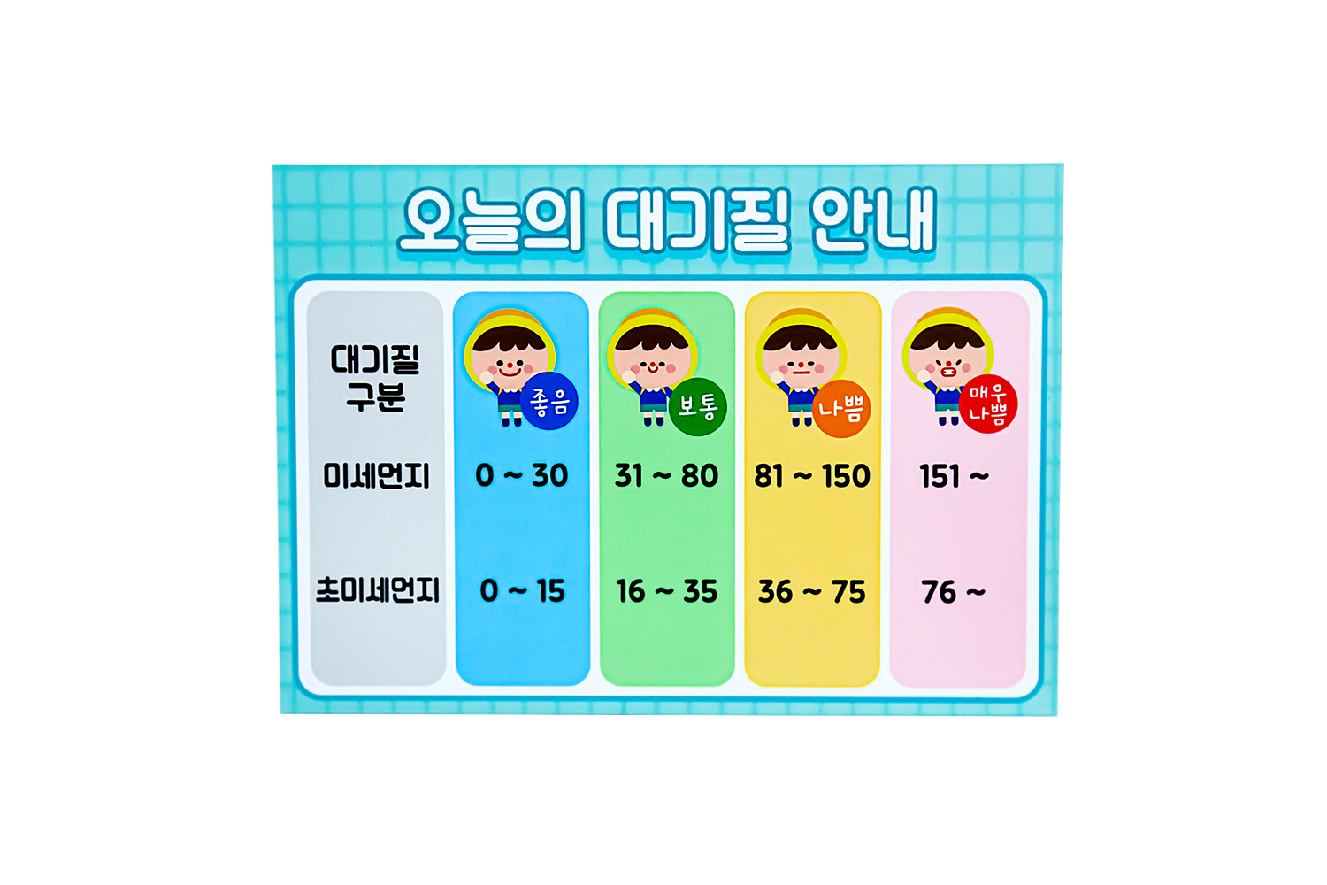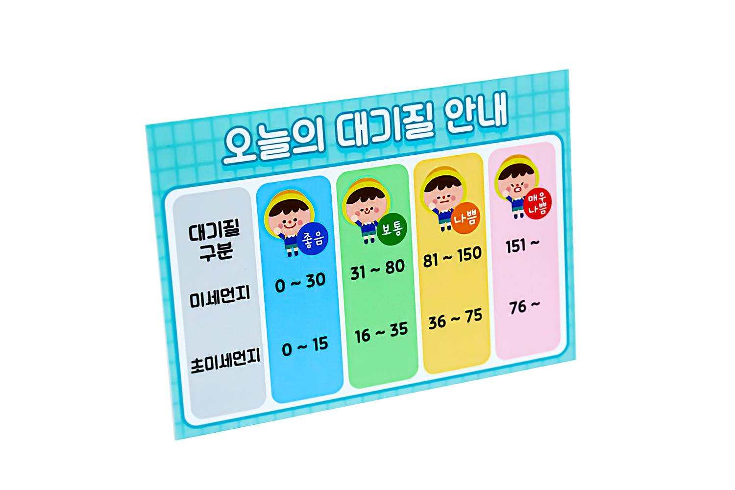 미세먼지의 수치를 4단계로 구분하여 적어 아이들도 쉽게 읽을 수 있도록 제작하였고,