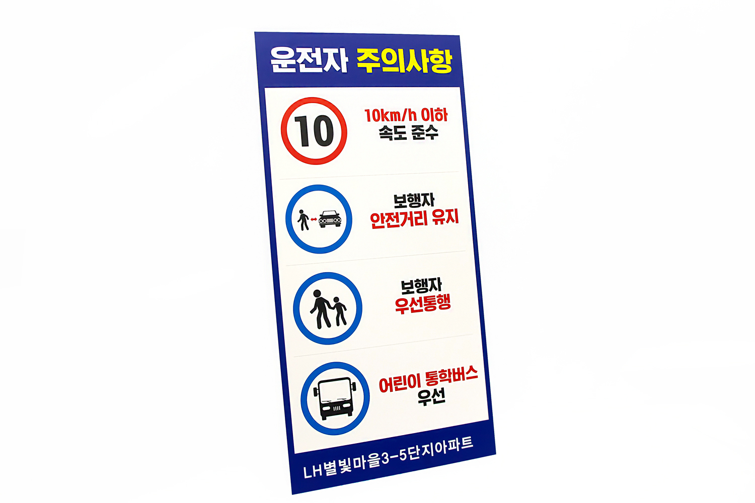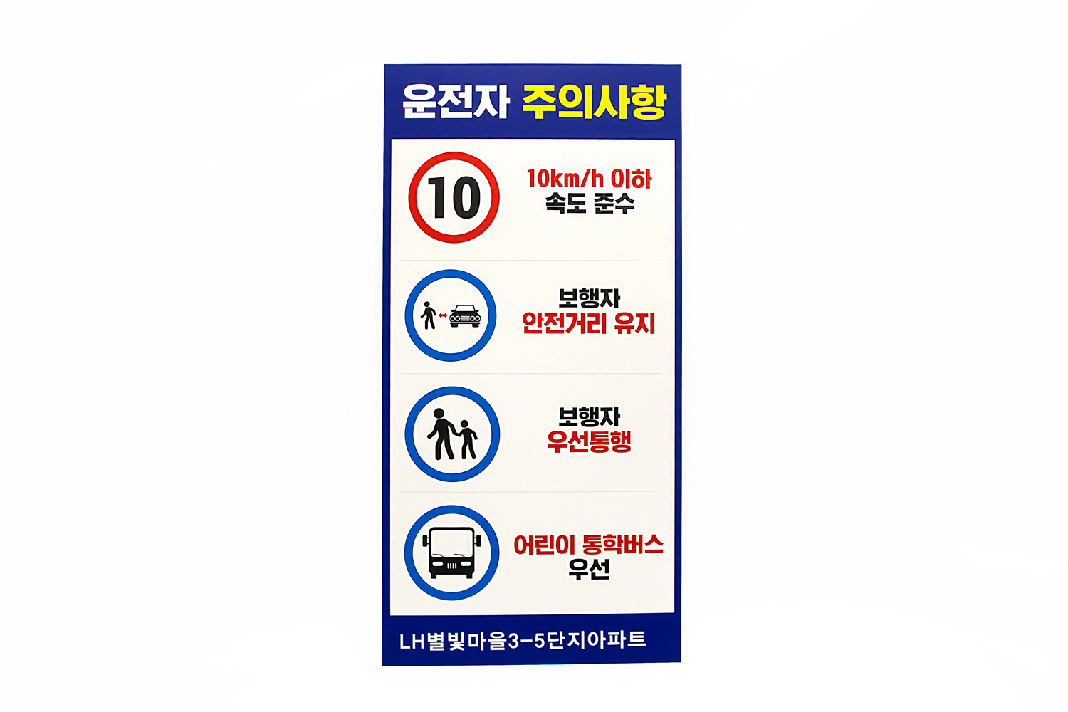 다음은 LH남양주별내별빛마을에서 주문해 주신 단지 내 운전자 주의사항 안내판입니다!