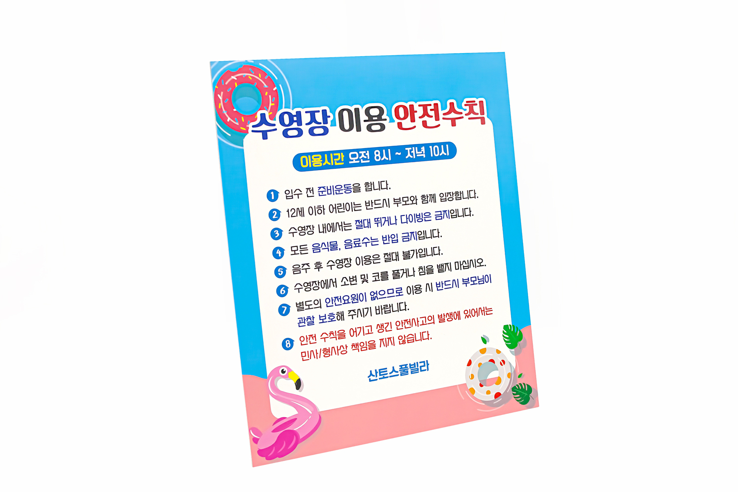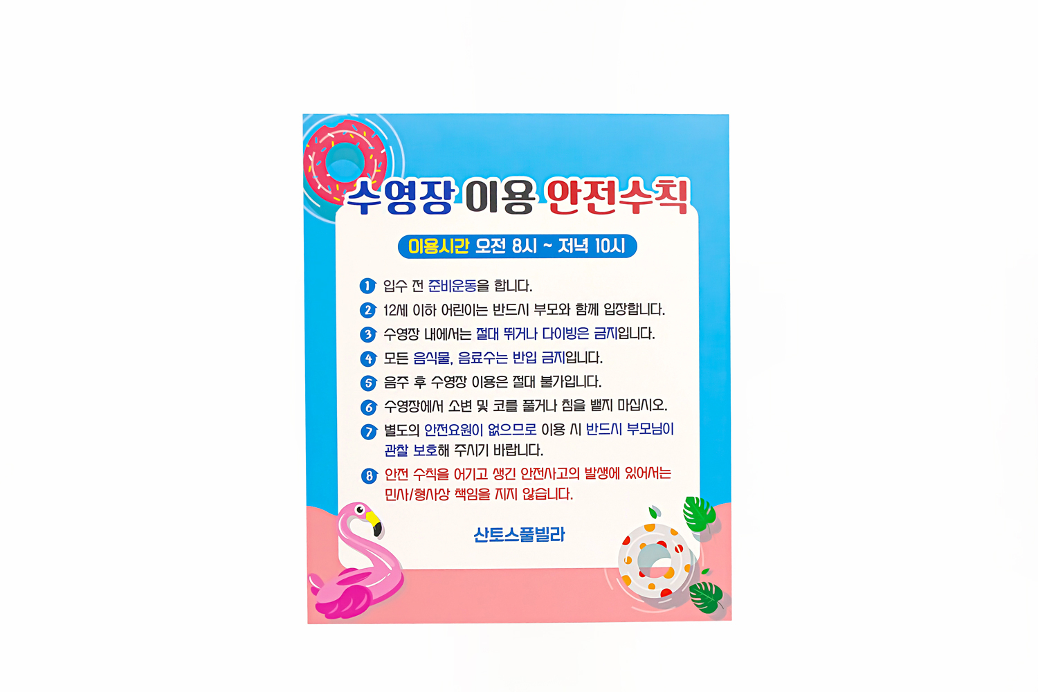 다음은 수영장 이용 안전수칙 안내판입니다!
