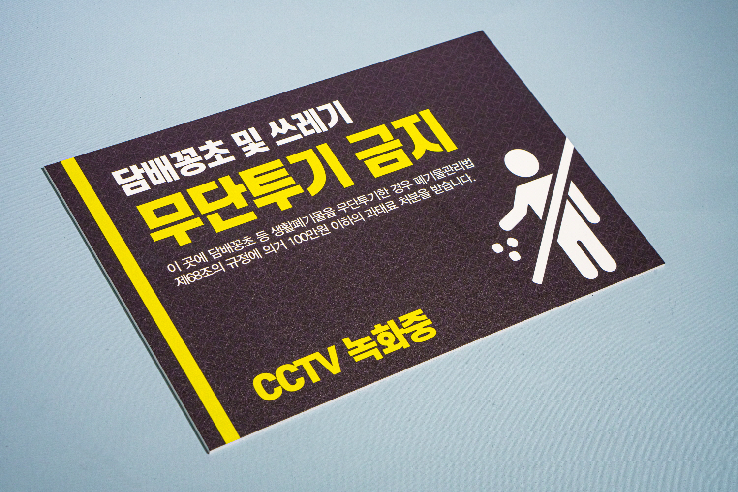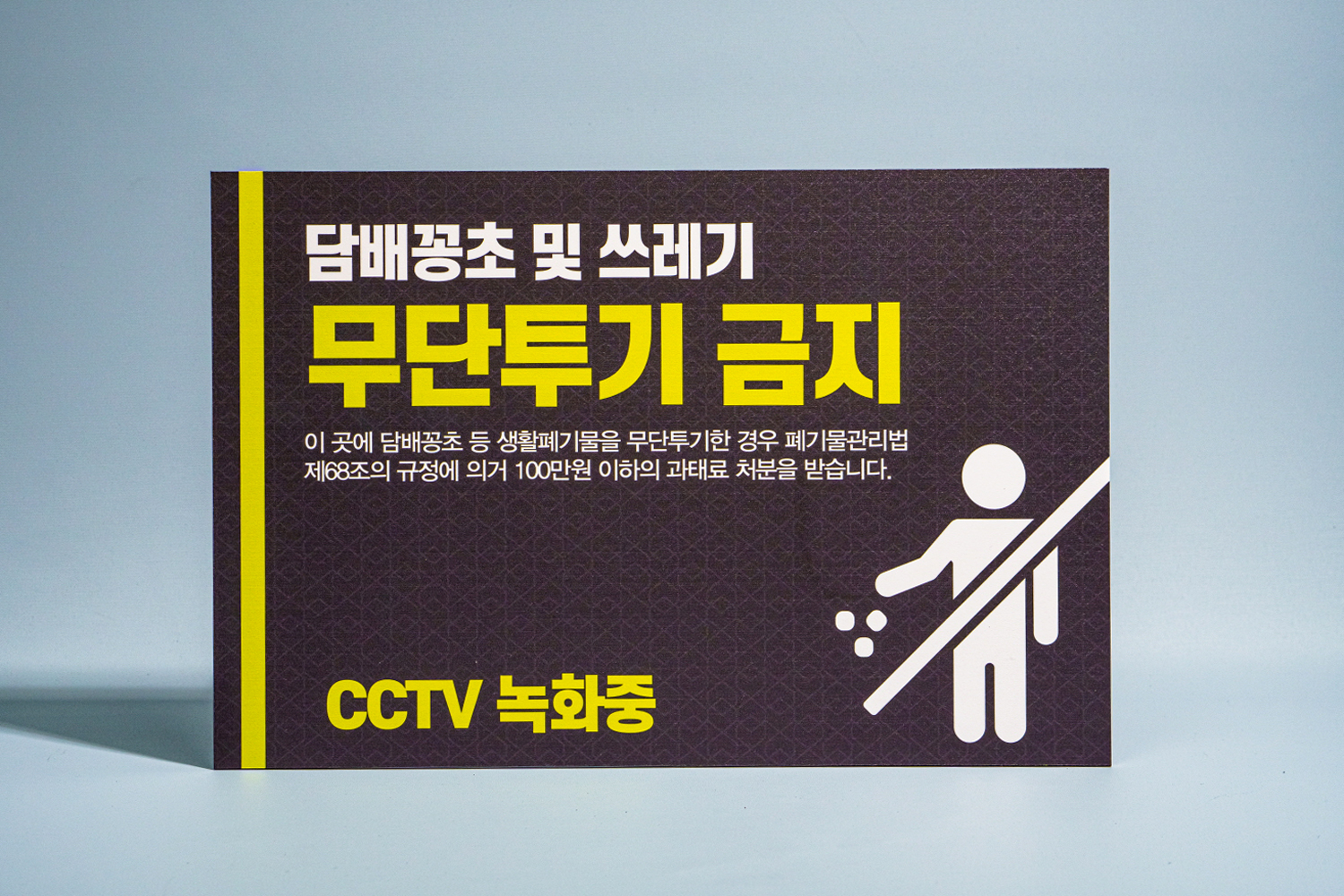 깔끔한 디자인과 눈에 띄는 문구로 제작된 안내판으로