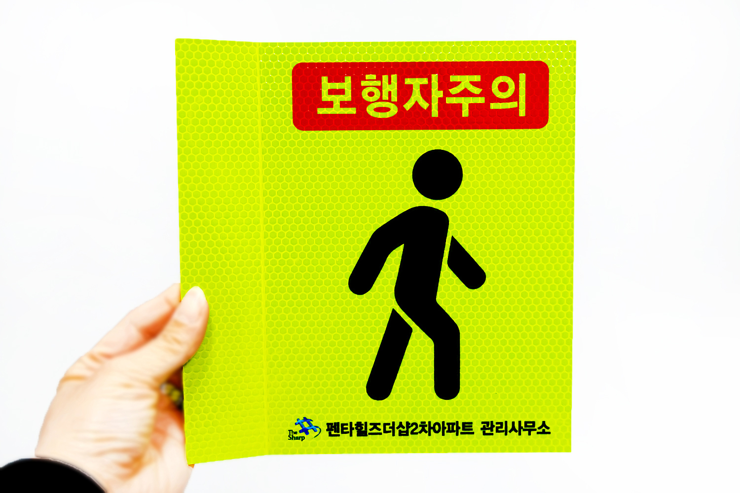 다음은 펜타힐즈더샵2차아파트에서 주문해 주신 보행자 주의 안내판입니다!