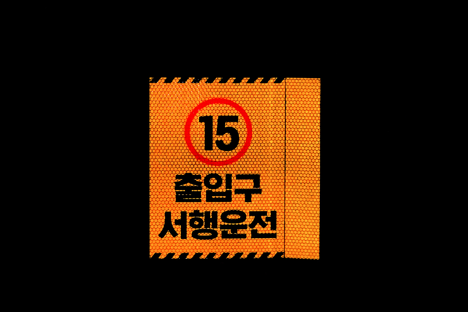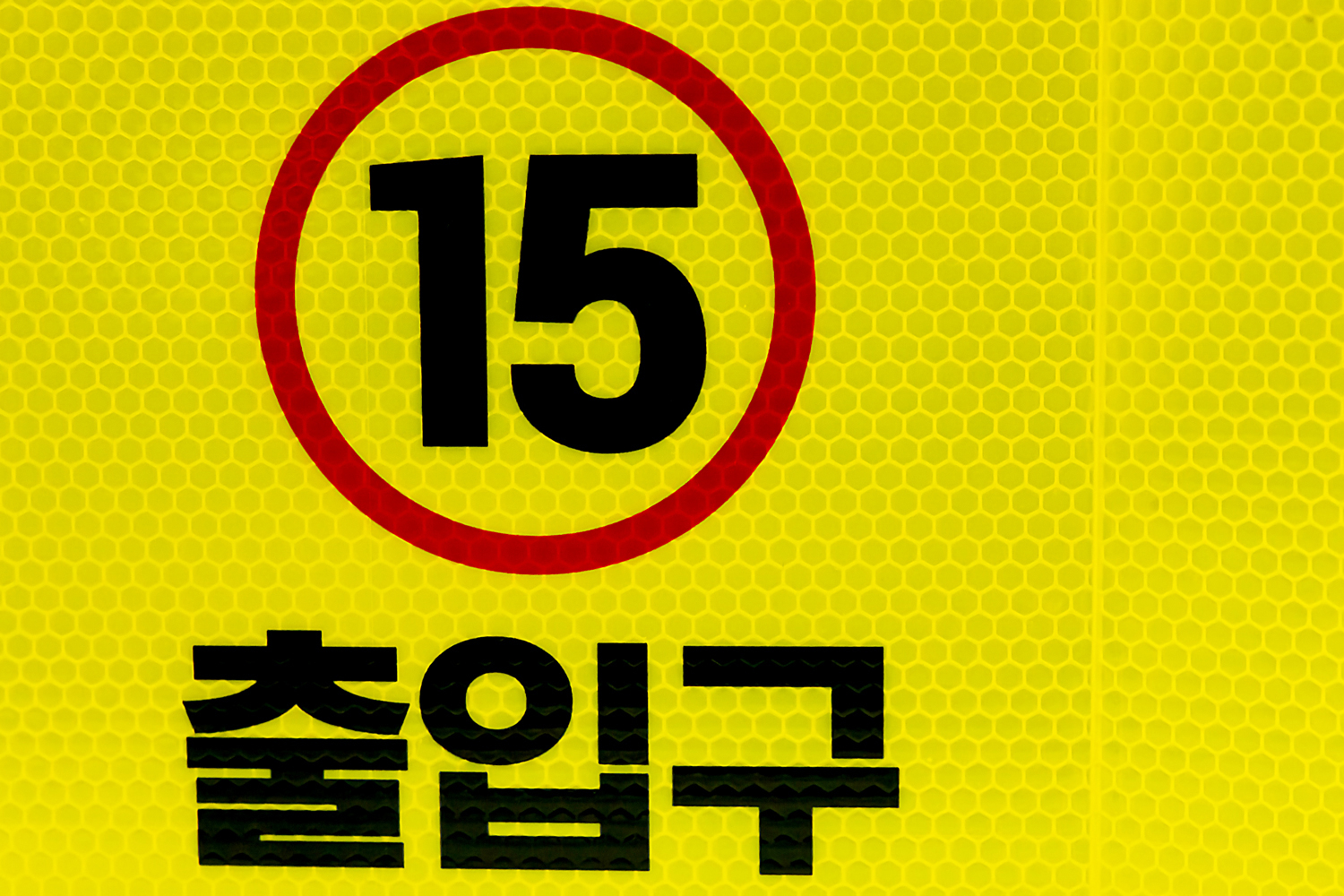 주로 도로 표지판에 사용되는 고휘도 반사 시트로 제작된 안내판으로